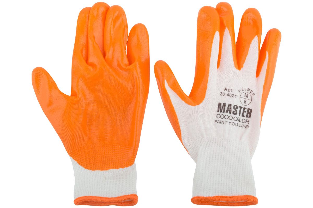 Перчатки MASTER COLOR 30-4011 белые, полиэстер с обливкой из нитрила, р-р М/8