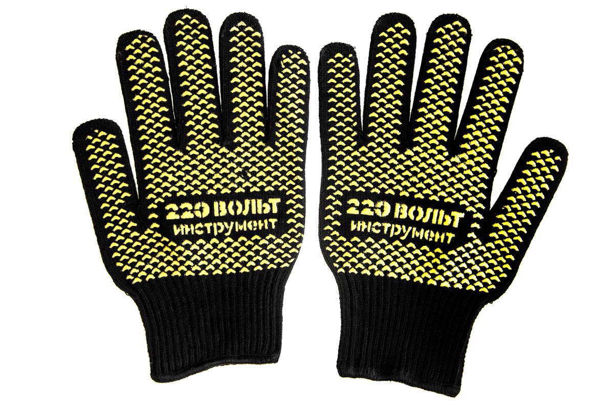 Перчатки строительные 220 ВОЛЬТ ХБ с ПВХ покрытием