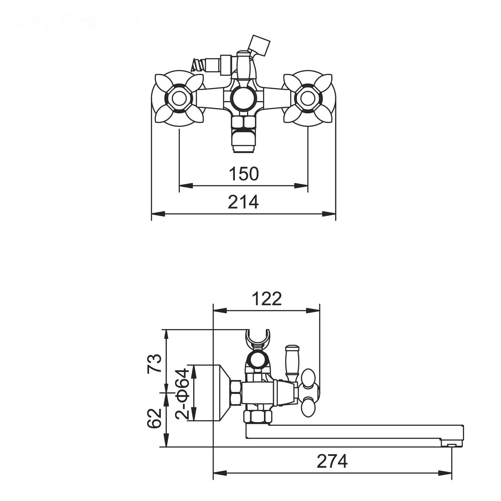 Смеситель для ванны Accoona A6482G, двухрычажный, белый/хром