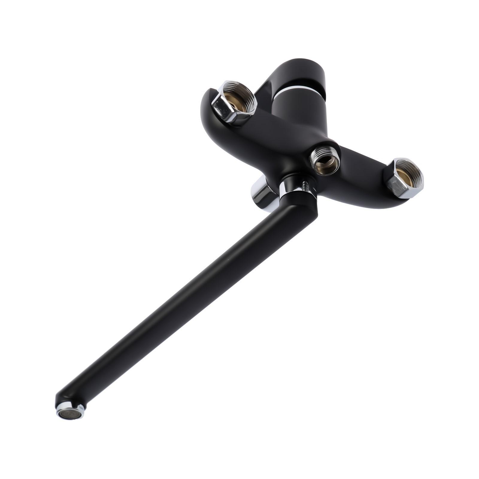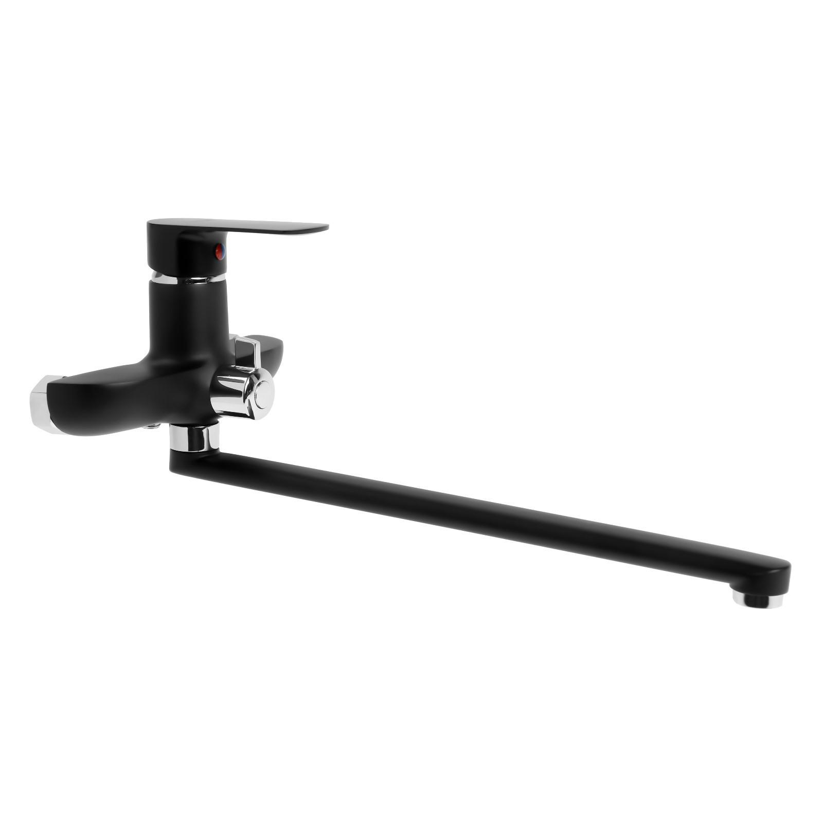 Смеситель для ванны ZEIN Z2493, излив 35 см, картридж 35 мм, с душ набором, черный/хром