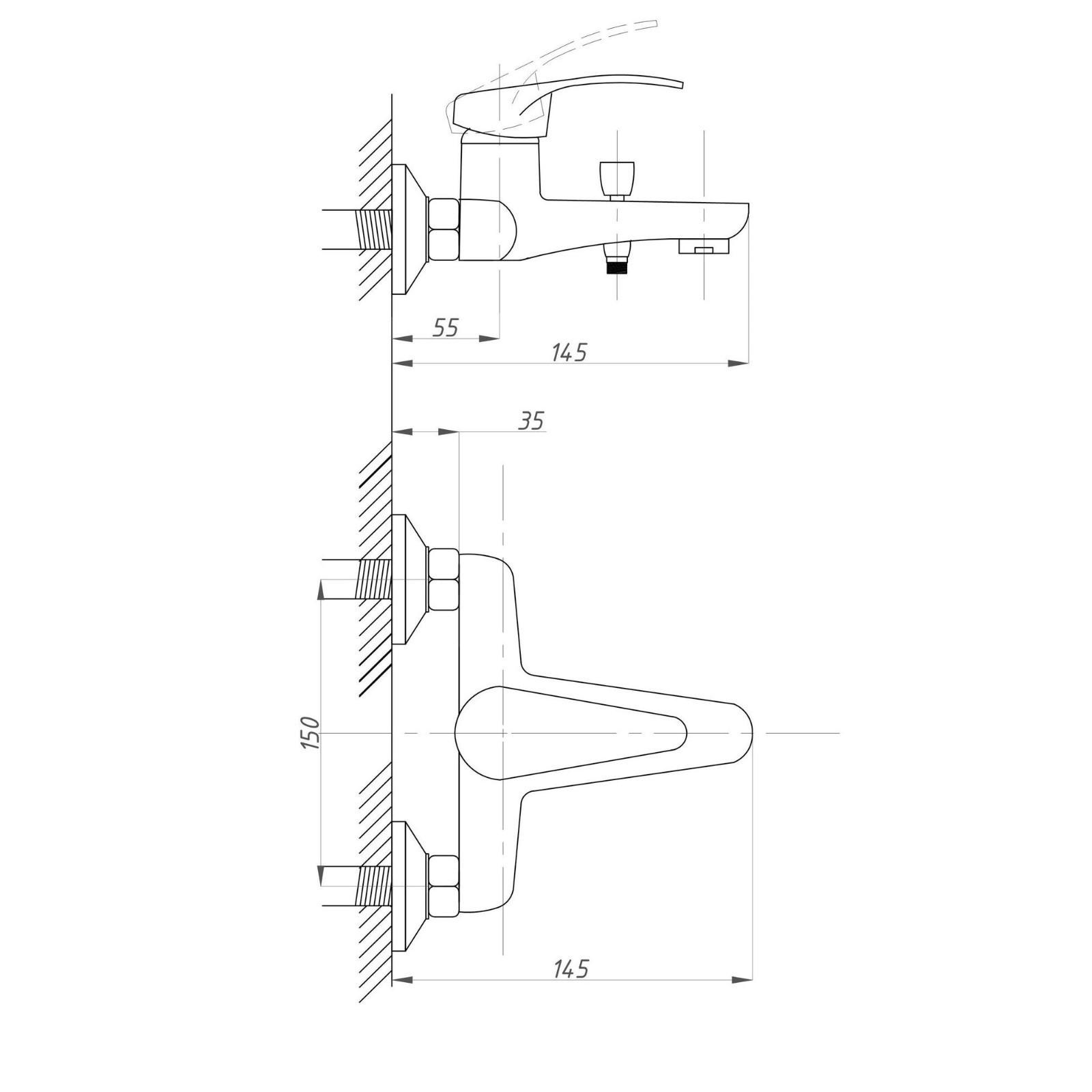 Смеситель для ванны "ПСМ-Профсан" PSM-104-1, однорычажный, длинна излива 80 мм, лейка, хром 770448