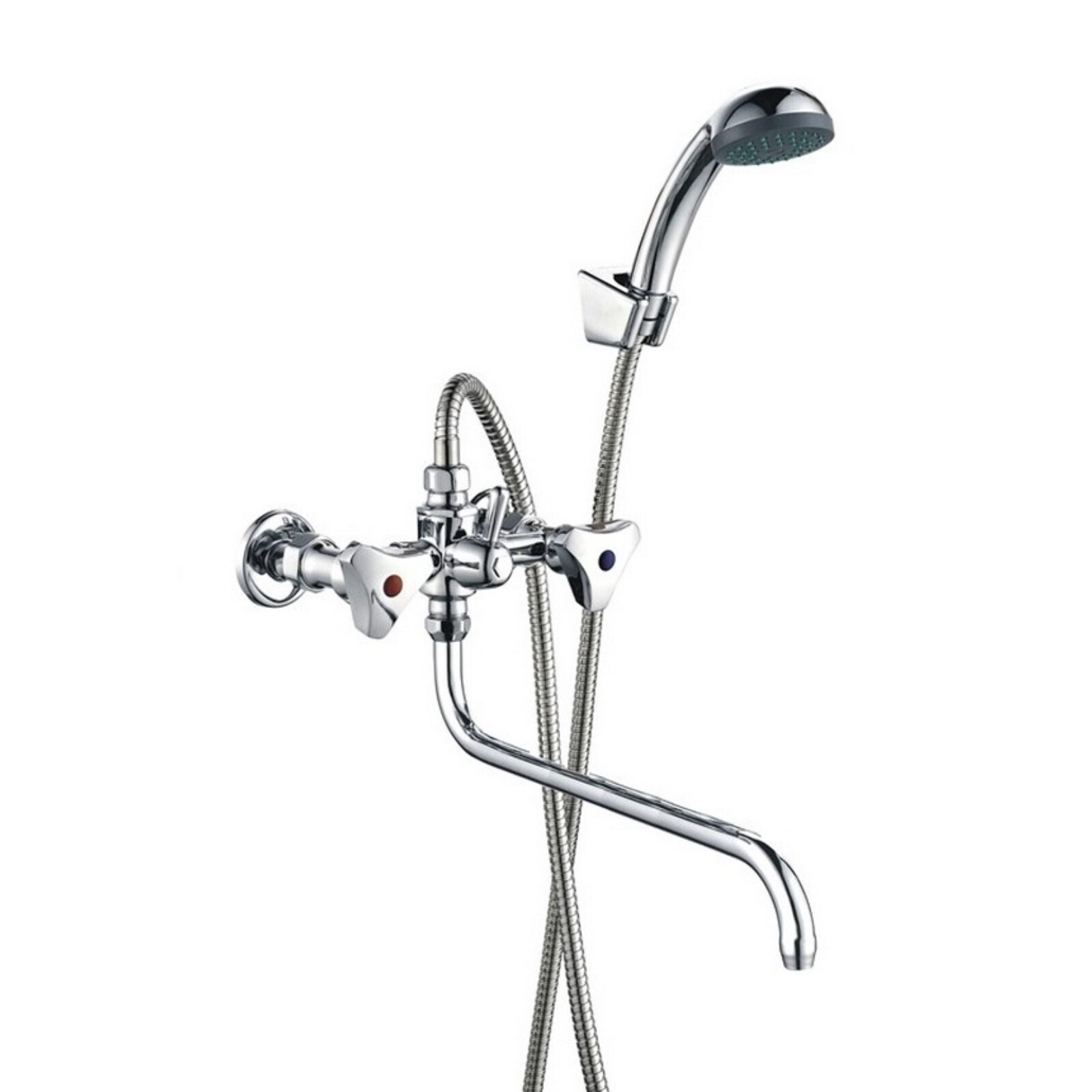 Смеситель для ванны "ПСМ-Профсан" PSM-150-80, двухвентильный, душевой набор, хром