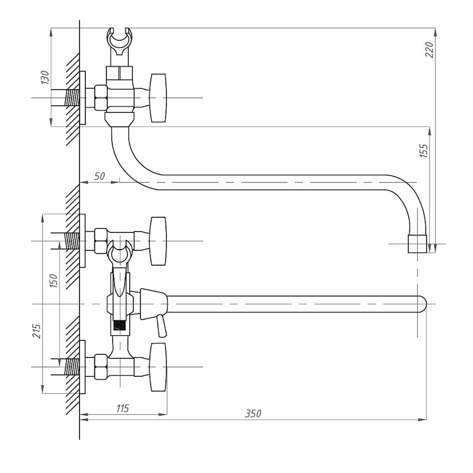 • Длина излива, мм 300