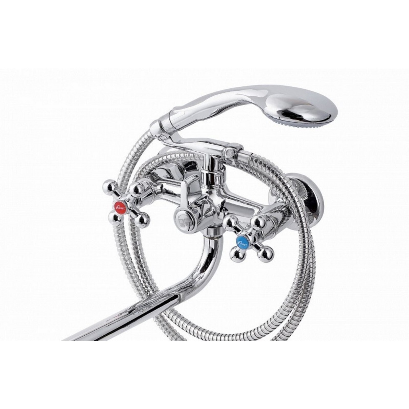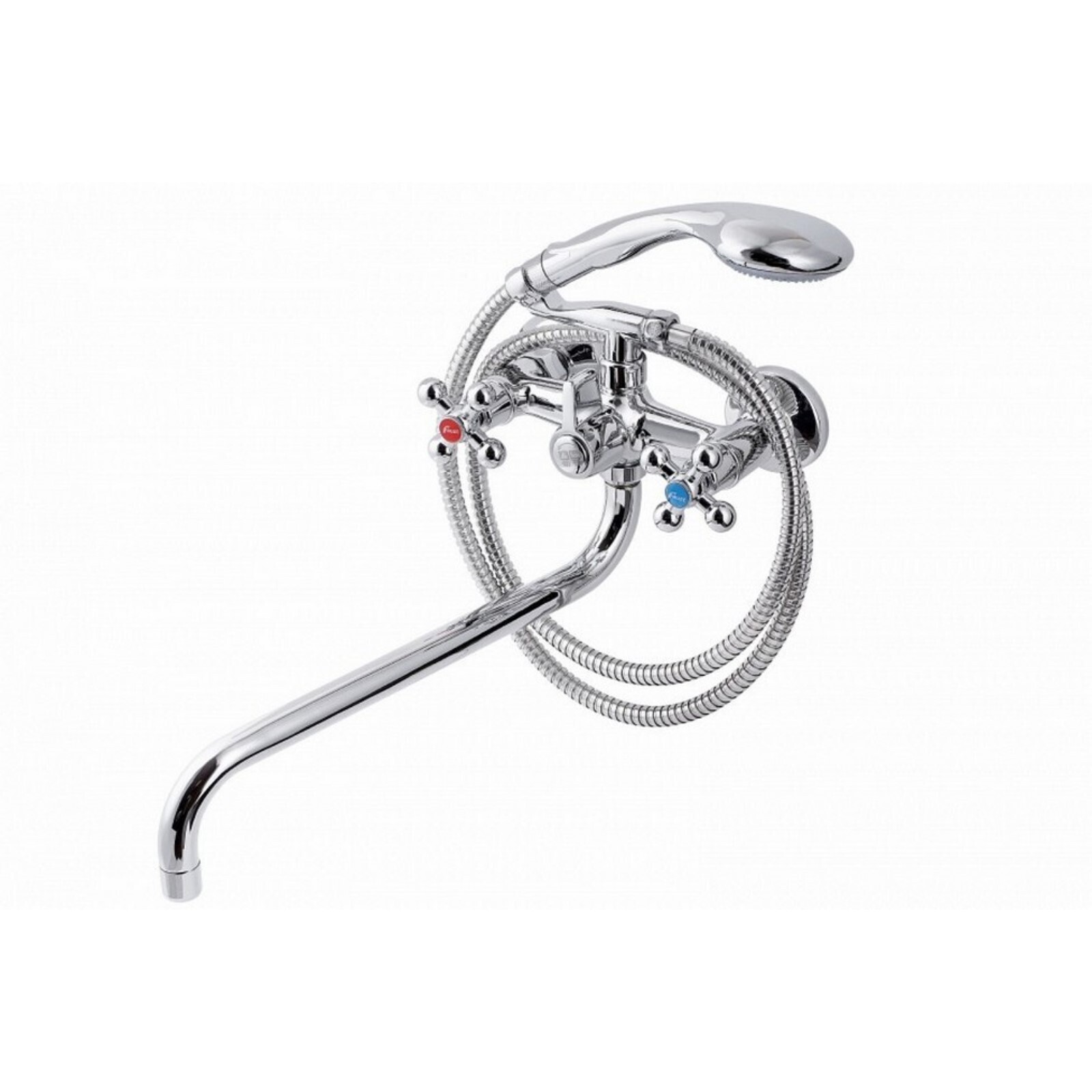 Смеситель для ванны FAUZT FZs-435-32, двухвентильный, длинный излив, душевой набор, хром