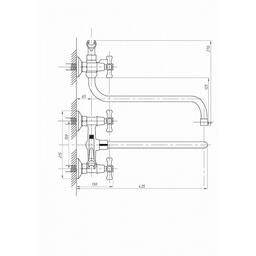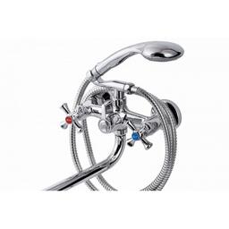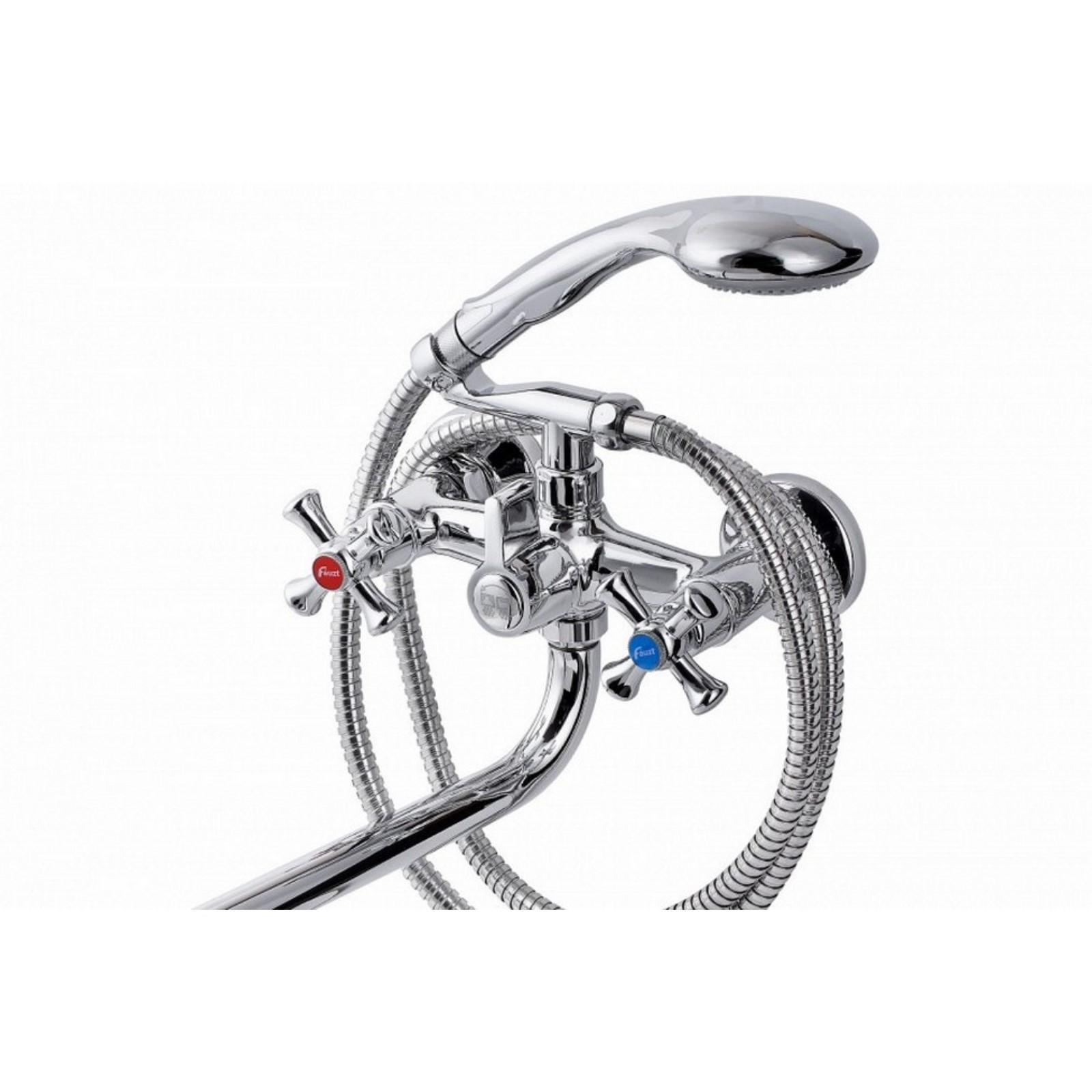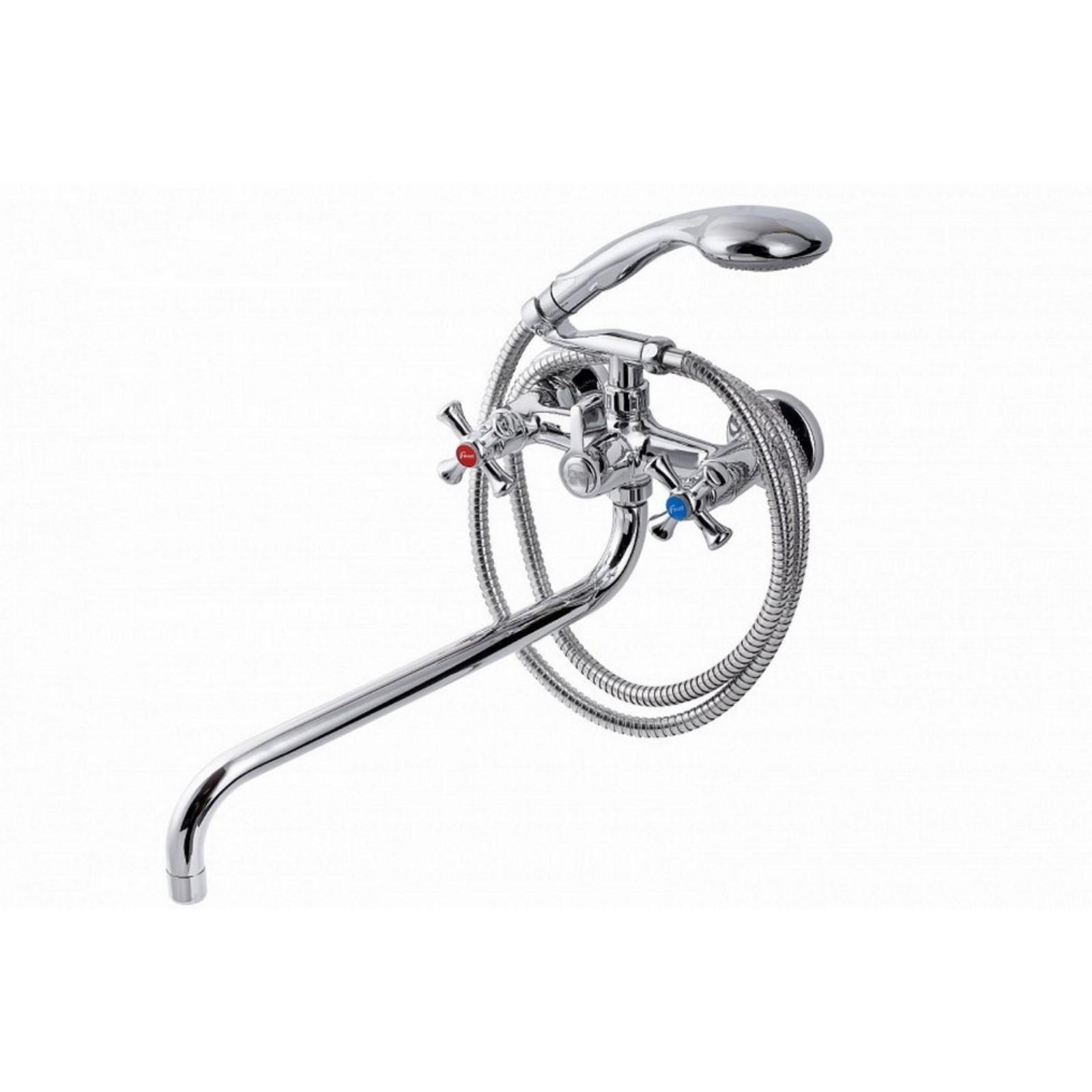 Смеситель для ванны FAUZT FZs-435-07, двухвентильный, длинный излив, душевой набор, хром