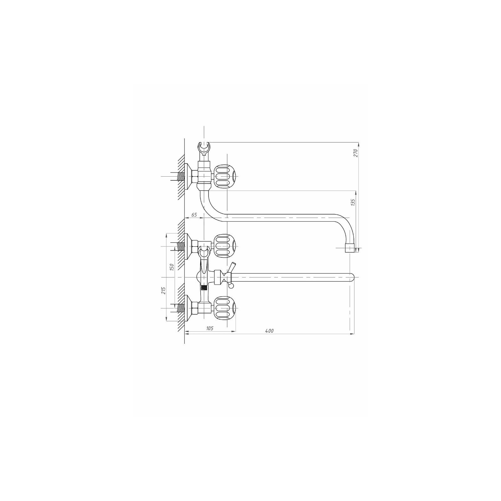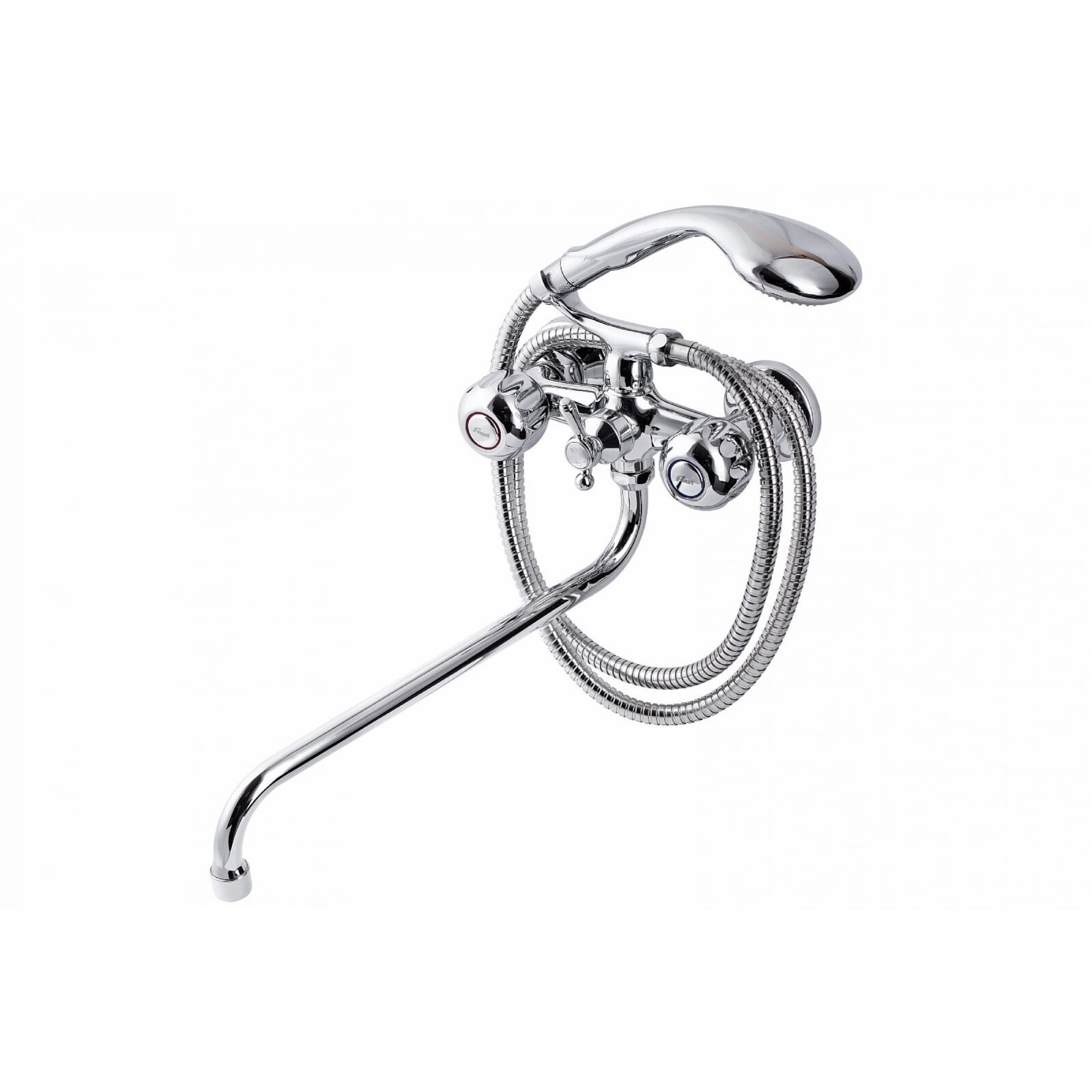 Смеситель для ванны FAUZT FZs-317-21, двухвентильный, излив 330 мм, лейка, хром