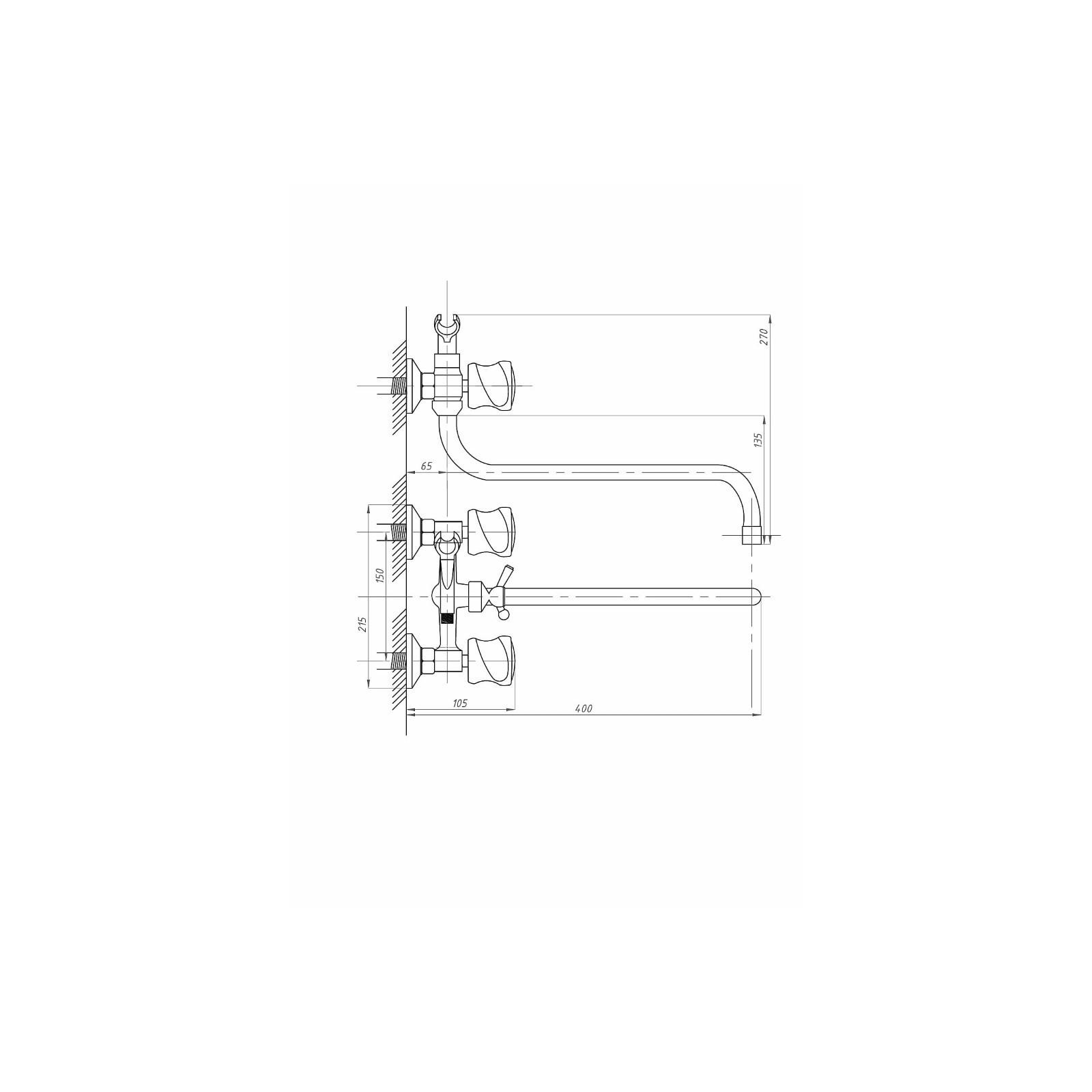 Смеситель для ванны FAUZT FZs-317-39, двухвентильный, излив 330 мм, лейка, хром
