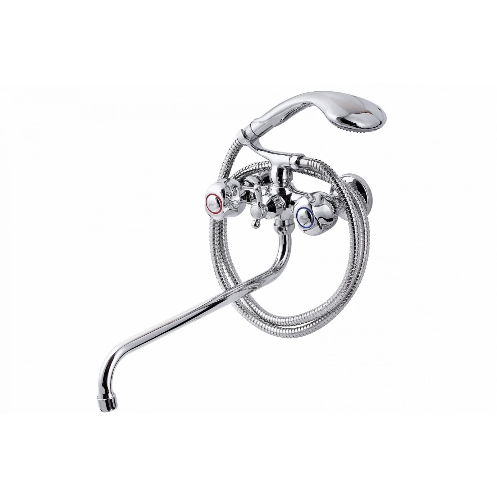 Смеситель для ванны FAUZT FZs-317-76, двухвентильный, излив 330 мм, лейка, хром