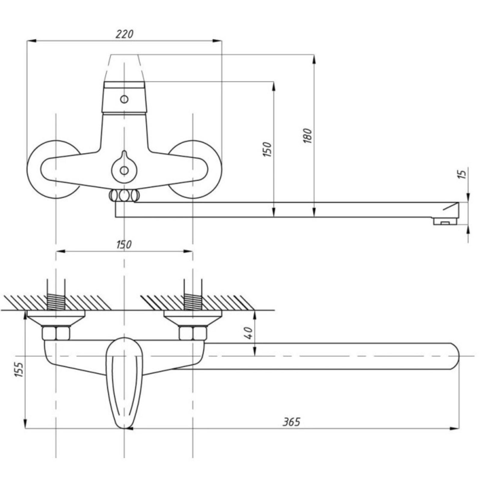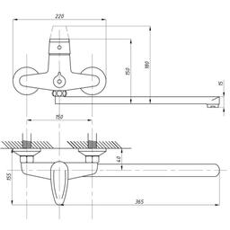 Смеситель для ванны TSARSBERG TSB-950-1202, однорычажный, излив 360 мм, лейка, хром