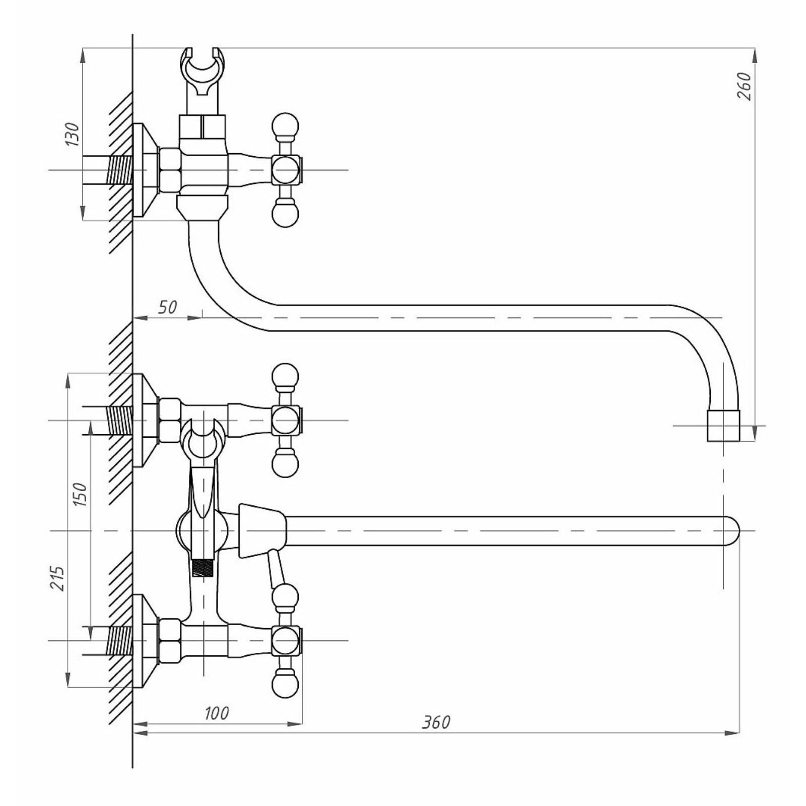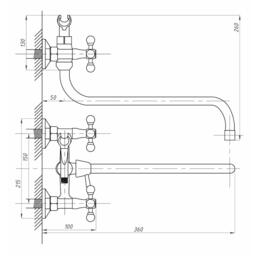 Смеситель для ванны "ПСМ-Профсан" PSM-156-89, двухвентильный, душевой набор, хром
