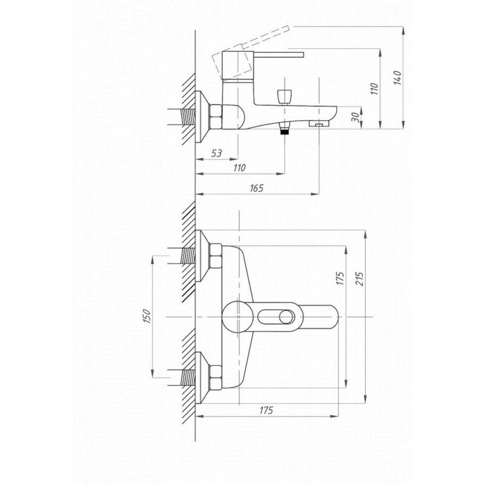Смеситель для ванны "ПСМ-Профсан" PSM-815-008, однорычажный, излив 175 мм, лейка, хром
