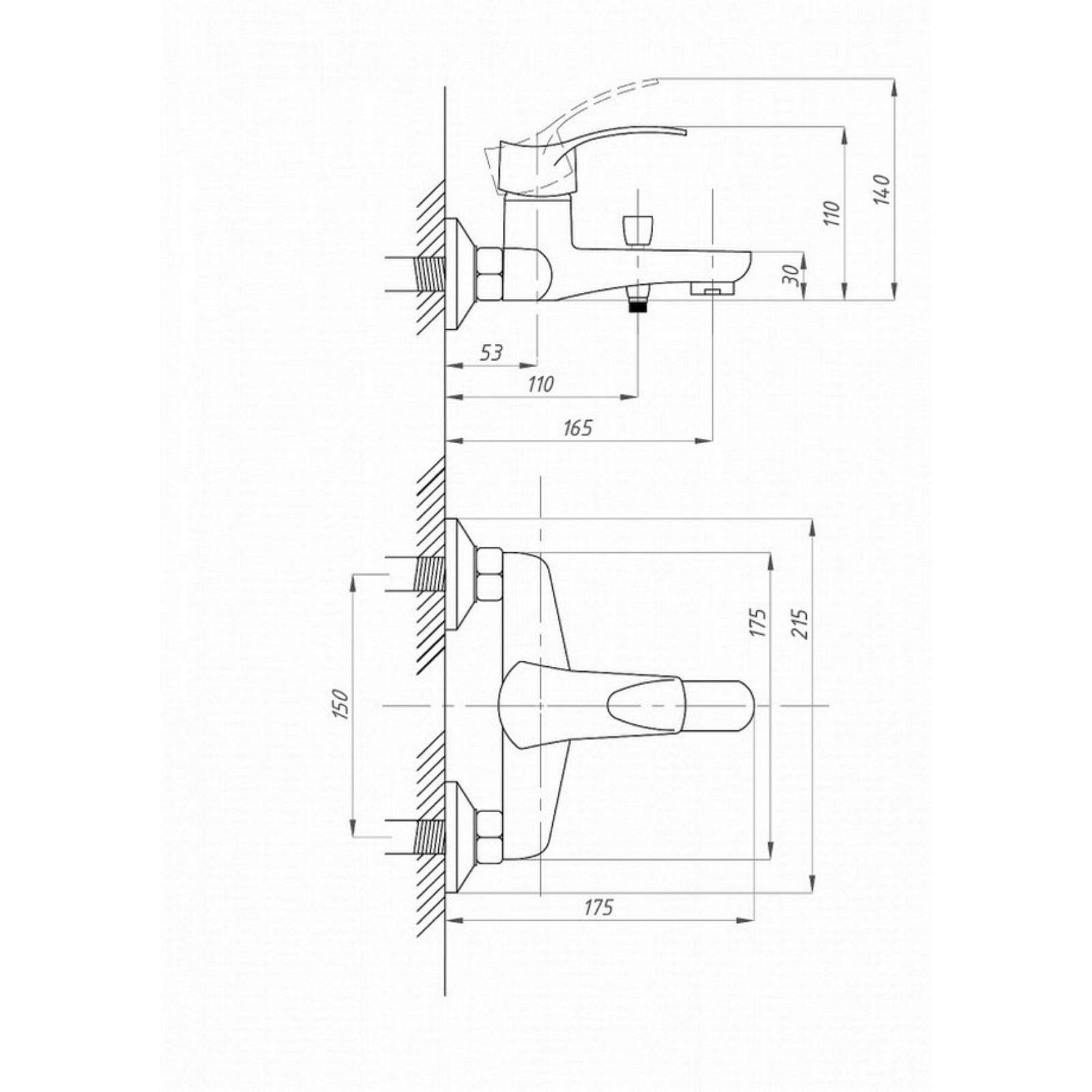 Смеситель для ванны "ПСМ-Профсан" PSM-815-023, однорычажный, излив 165 мм, лейка, хром