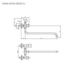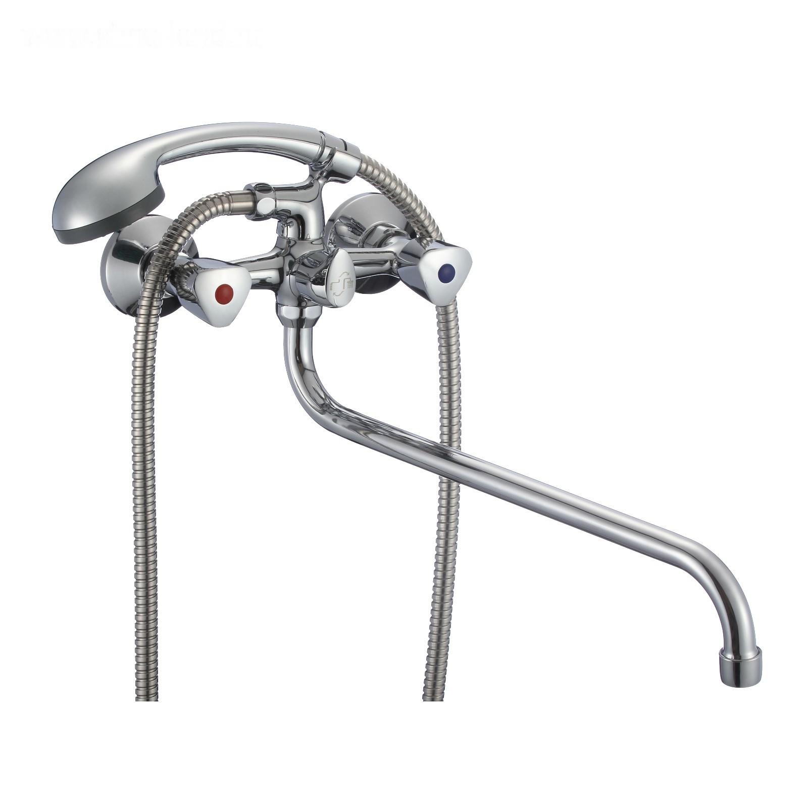 Смеситель для ванны Eleanti ELT2020, двухвентильный, шланг, лейка, кронштейн, хром