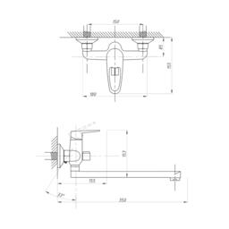 Смеситель для ванны "ПСМ-Профсан" PSM-104-2, однорычажный, длинна излива 250 мм, лейка, хром 77044