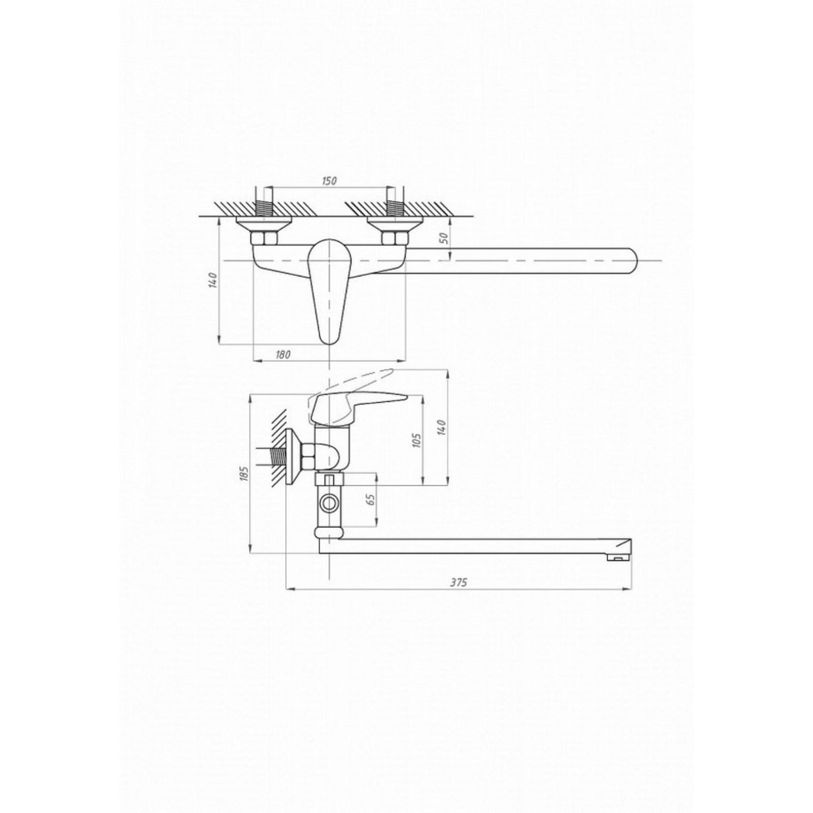 Смеситель для ванны "ПСМ-Профсан" PSM-523-023, однорычажный, длинна излива 320 мм, хром