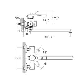 Смеситель для ванны Zegor PUD7-A045KТ, цинк, картридж 35 мм, длинный излив, бронза