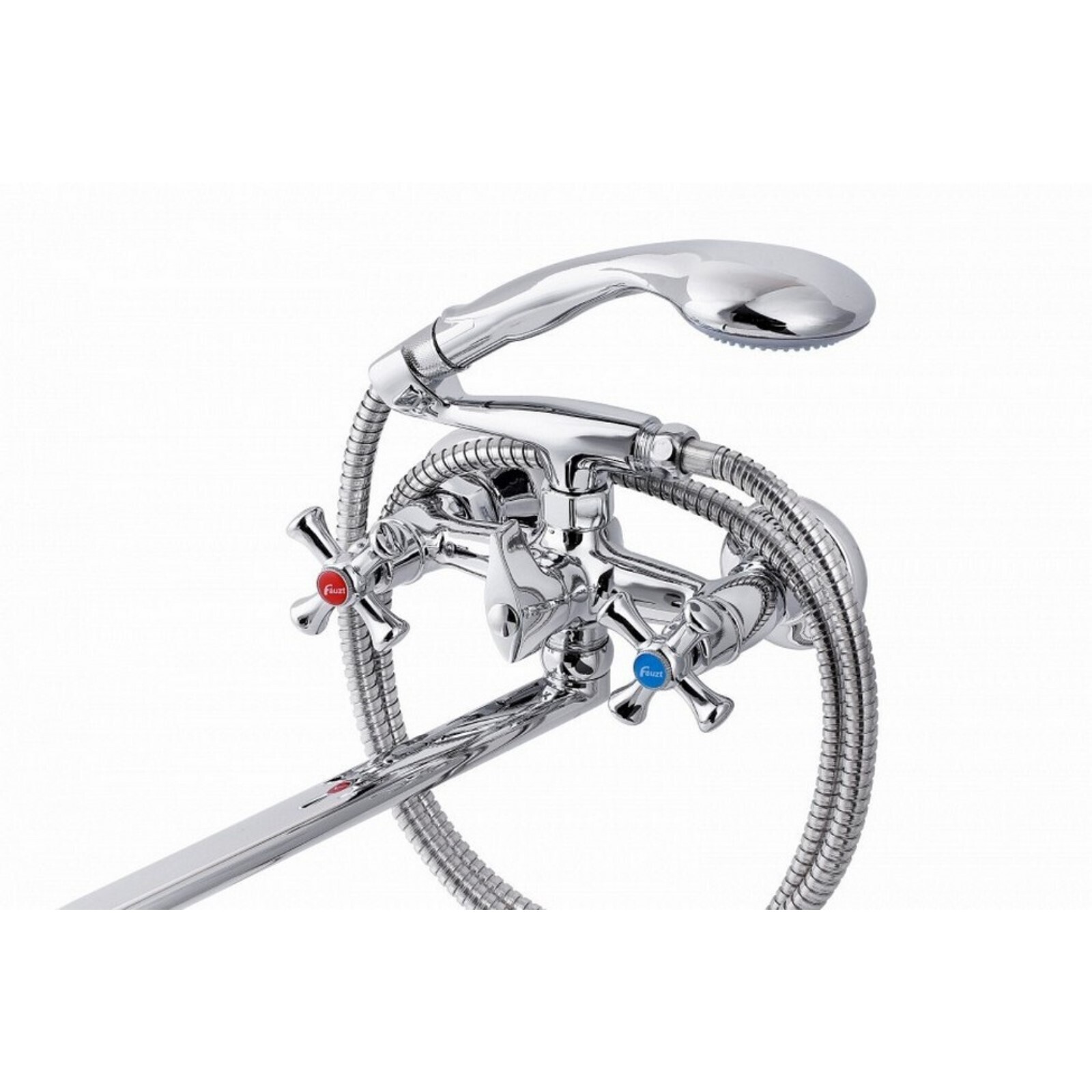 Смеситель для ванны FAUZT FZs-701-07, двухвентильный, длинный излив, душевой набор, хром