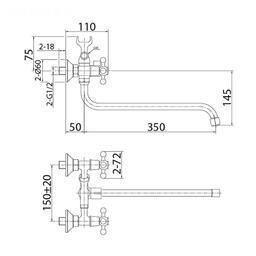 • Длина излива, мм 350