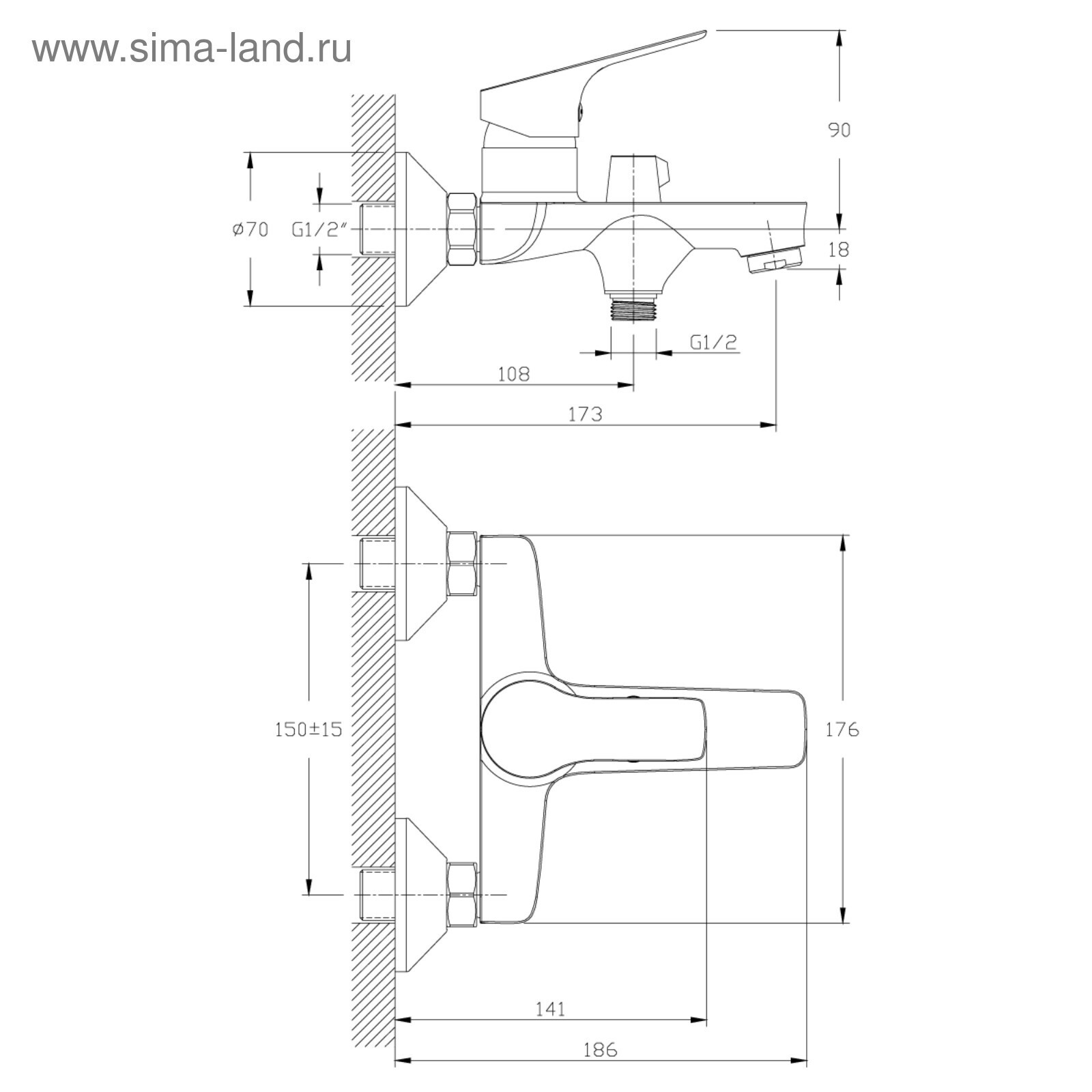 Смеситель для ванны Rossinka RS29-31, одноручный, с монолитным изливом, цвет хром