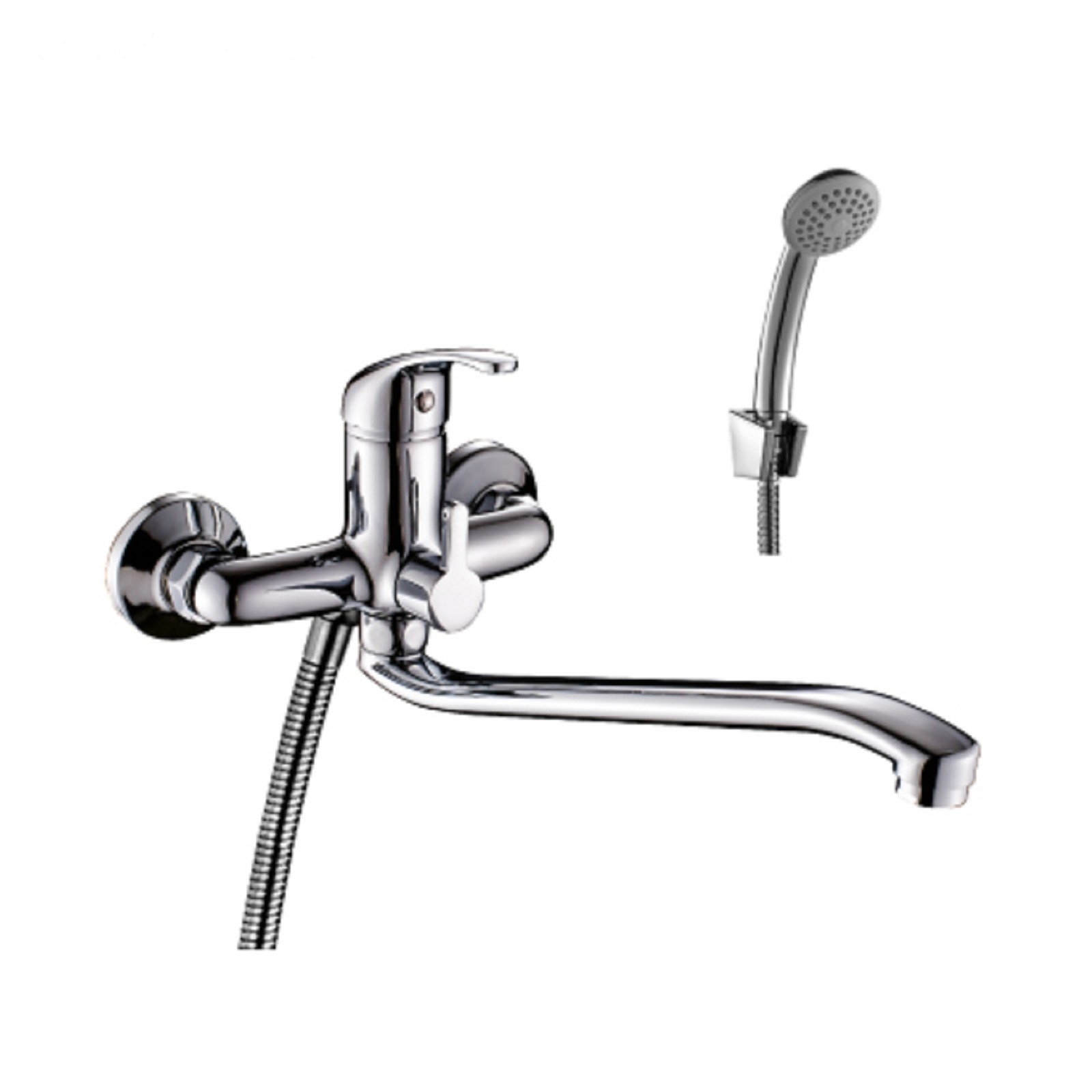 Смеситель для ванны Rossinka A35-34 эффектно впишется в интерьер небольшого помещения. Чтобы сэкономить пространство, аксессуар работает одновременно на раковину и ванну. Кран в форме буквы S позволяет выставить модель ровно по горизонтали даже при расхождении труб.