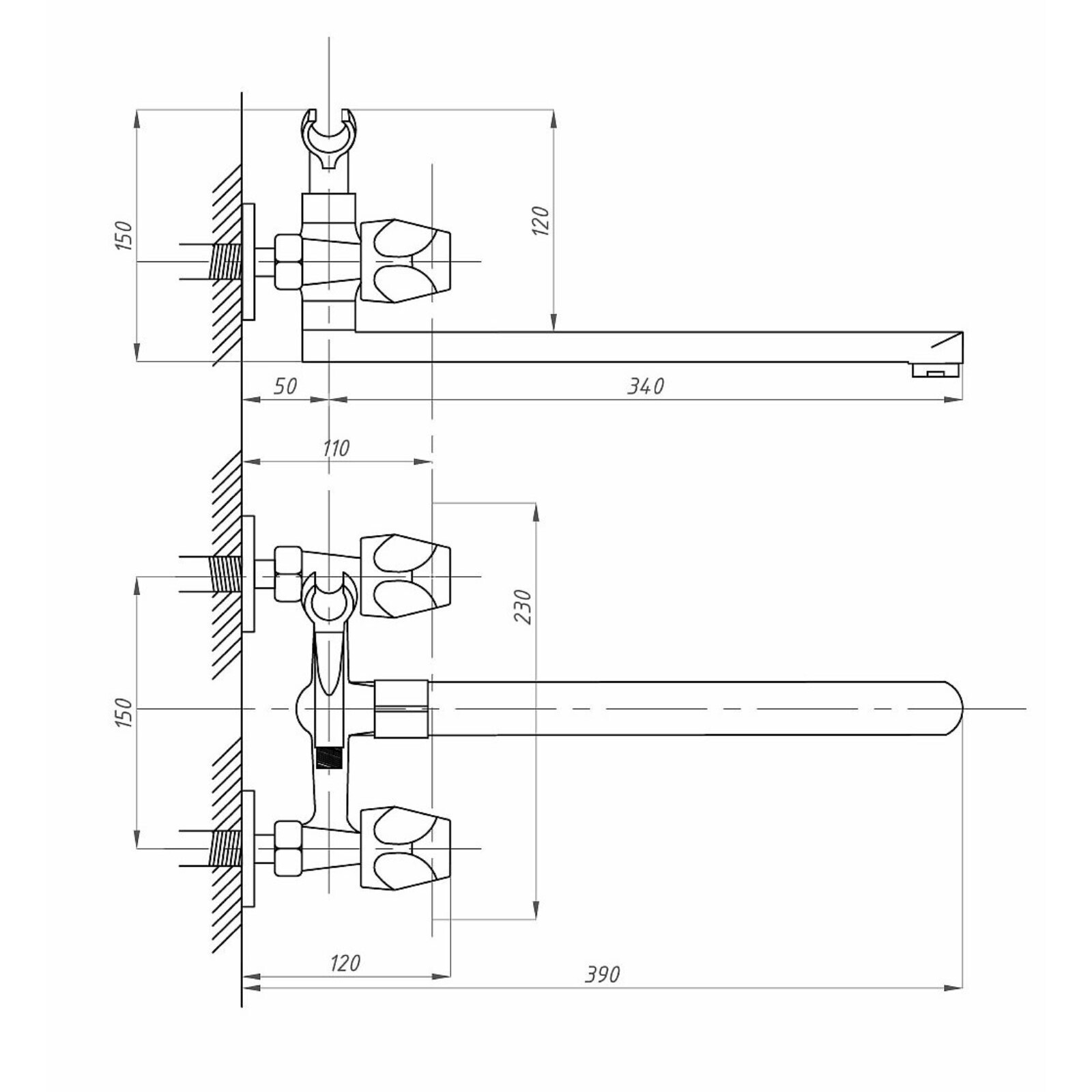 Смеситель для ванны "ПСМ-Профсан" PSM-159-48, двухвентильный, душевой набор, хром