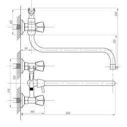 Смеситель для ванны "ПСМ-Профсан" PSM-157-50, двухвентильный, душевой набор, хром