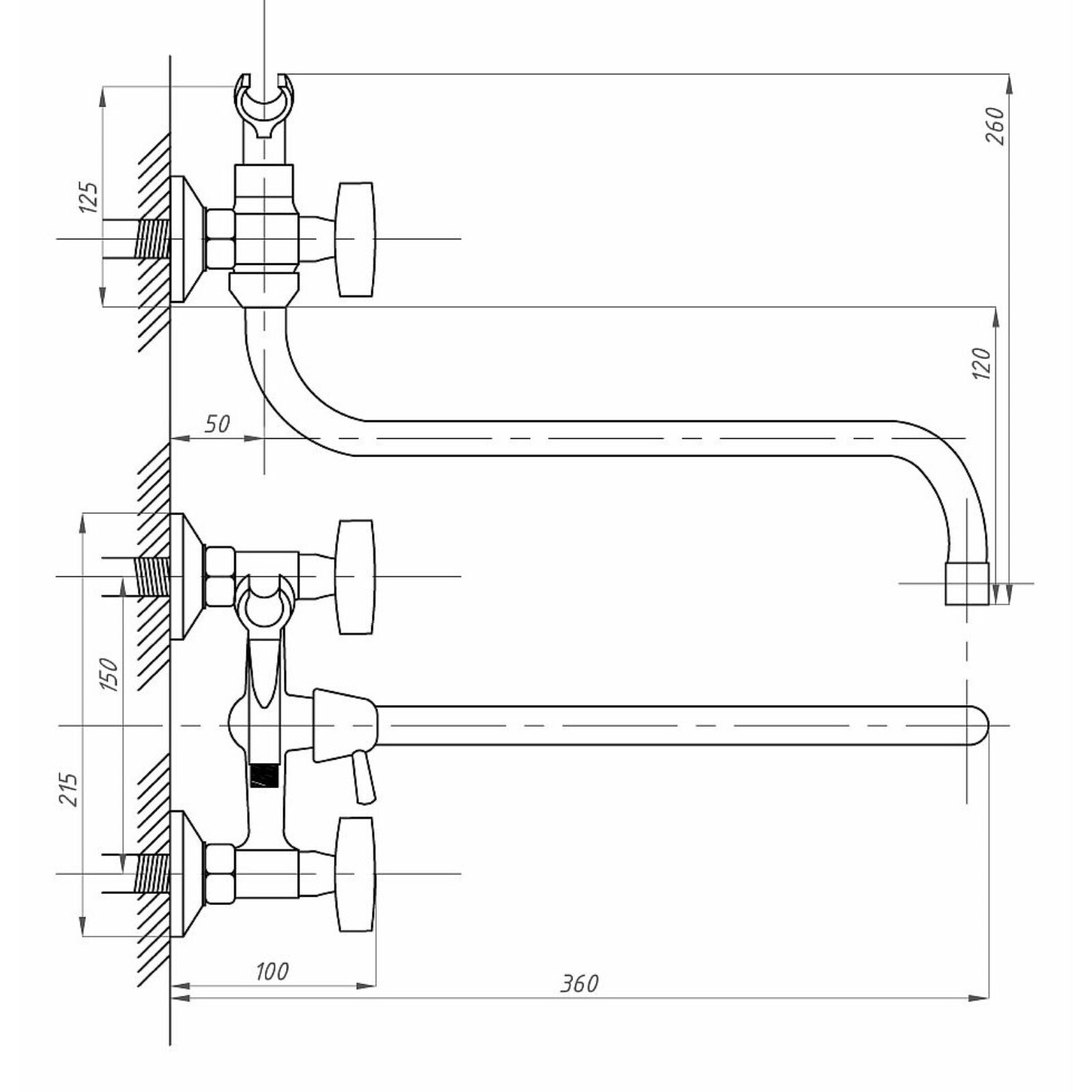 Смеситель для ванны "ПСМ-Профсан" PSM-157-80, двухвентильный, душевой набор, хром