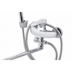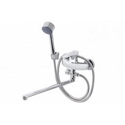 Смеситель для ванны FAUZT FZs-814-124, однорычажный, излив 340 мм, лейка, хром