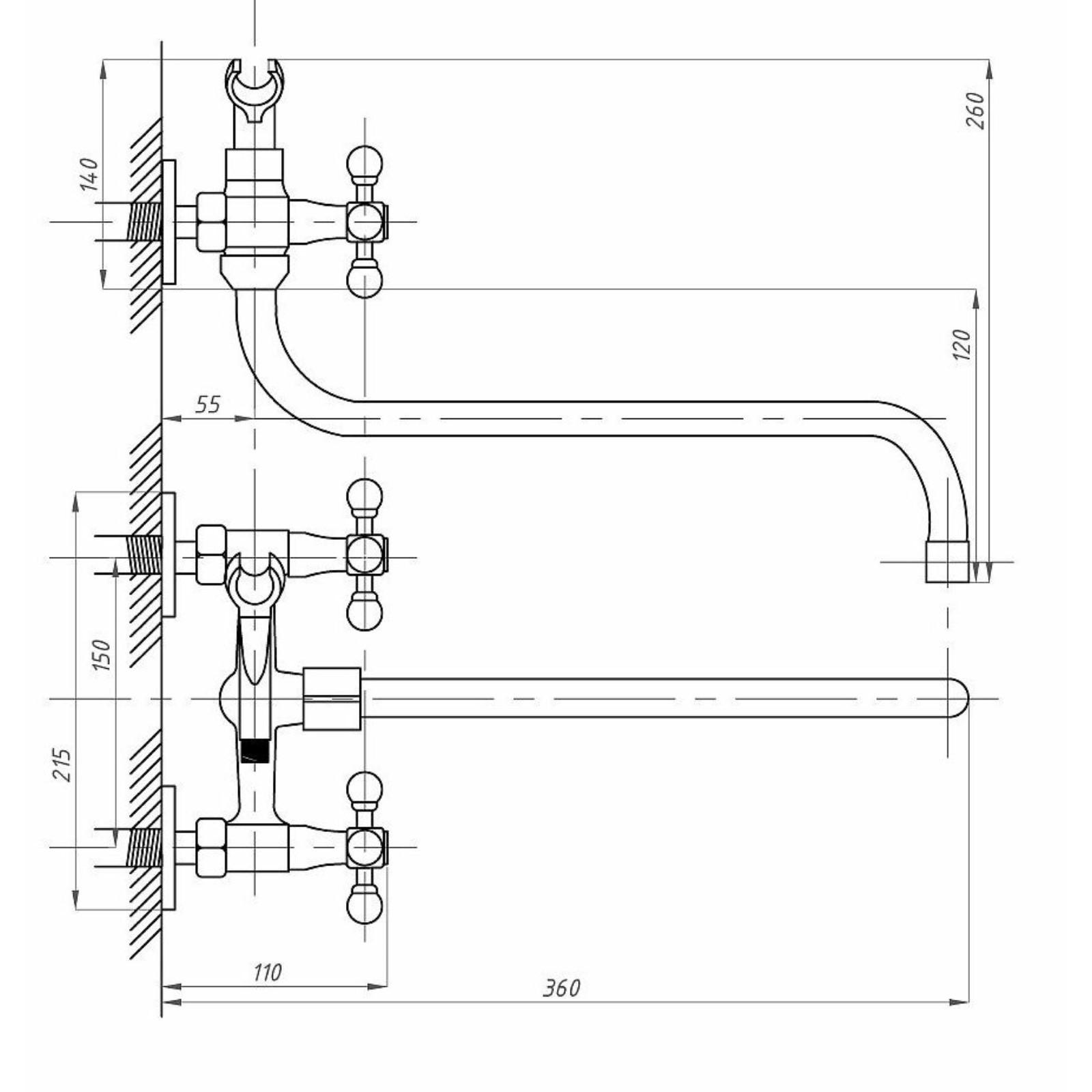 Смеситель для ванны "ПСМ-Профсан" PSM-158-89, двухвентильный, душевой набор, хром