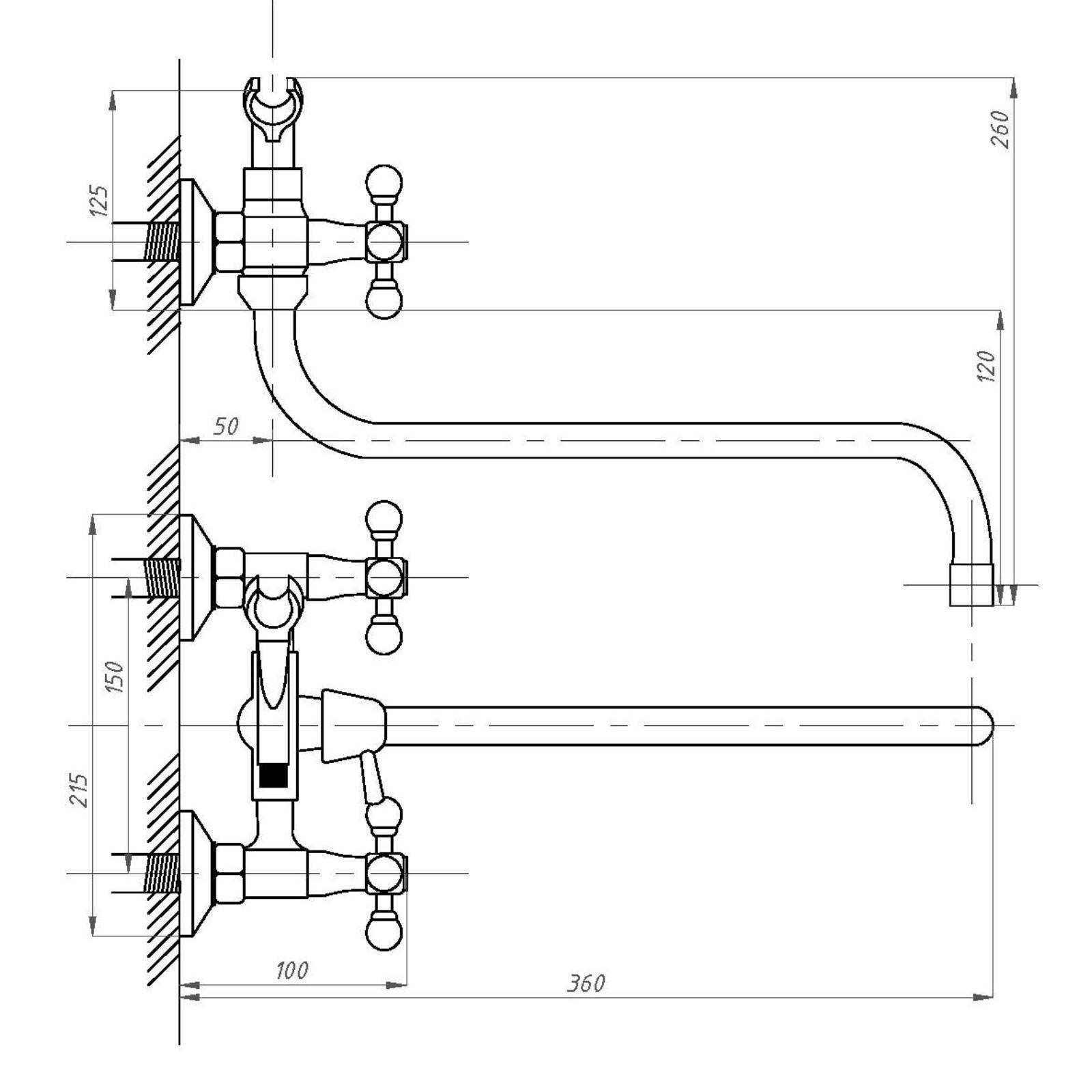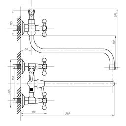 Смеситель для ванны "ПСМ-Профсан" PSM-165-89, двухвентильный, душевой набор, хром