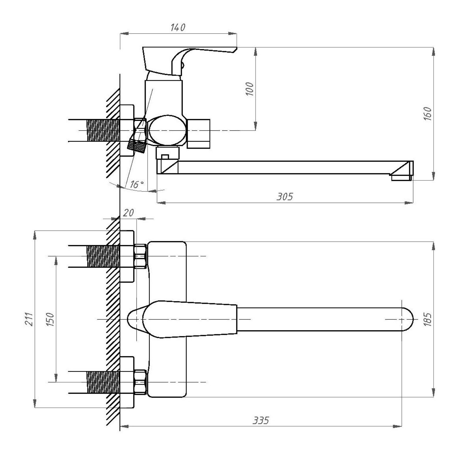 • Длина излива, мм 305
