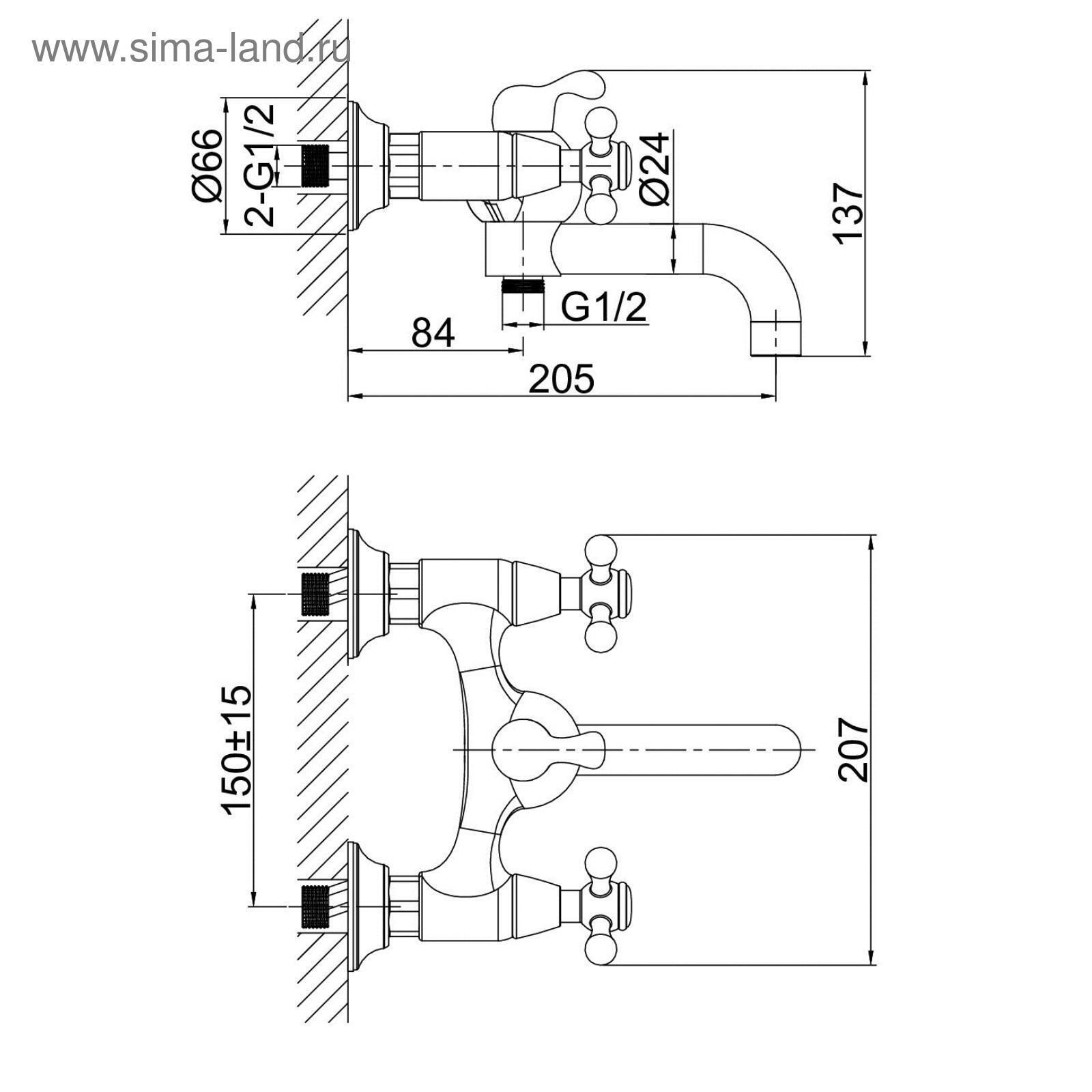 Смеситель для ванны D&K Hessen Hercules DA1423241, двухвентильный, хром