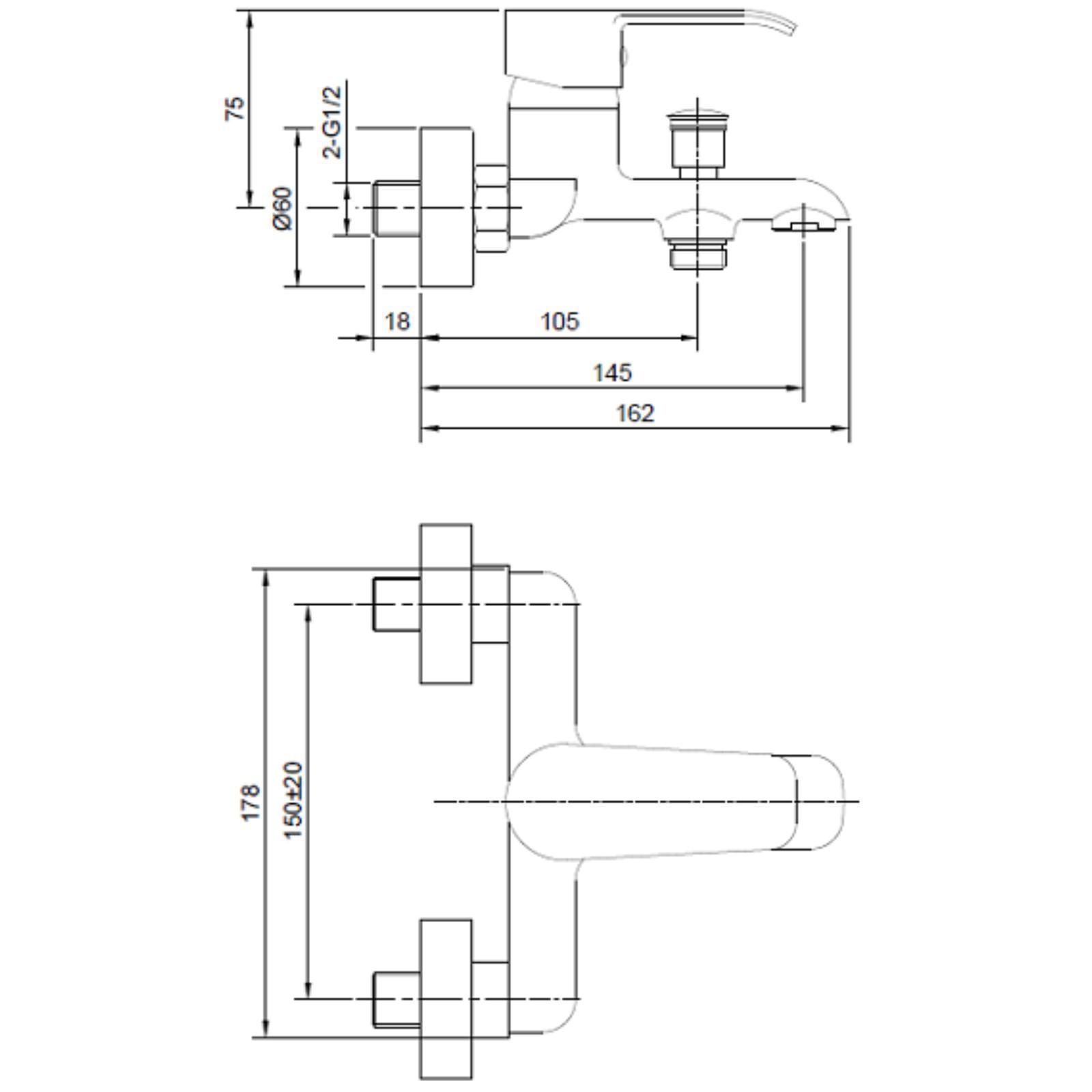 Смеситель ванны и душа Eleanti с коротким изливом, картридж 35 мм, хром
