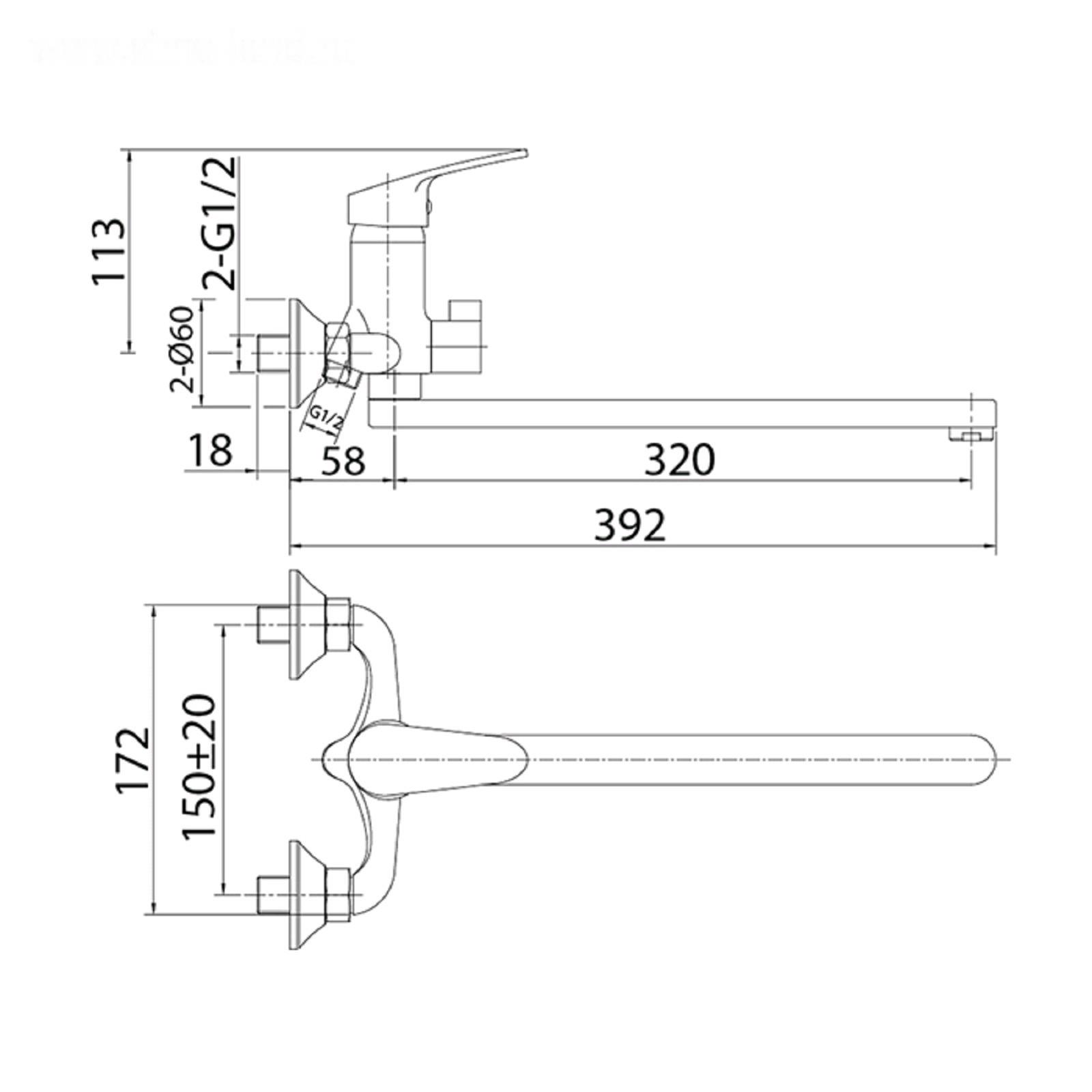 Смеситель для ванны Milardo Simp SIMSB02M10, однорычажный, плоский поворотный излив 320 мм