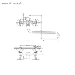 Смеситель для ванны RUSH Sakhalin SA5350-51, двухвентильный, длинный излив, хром