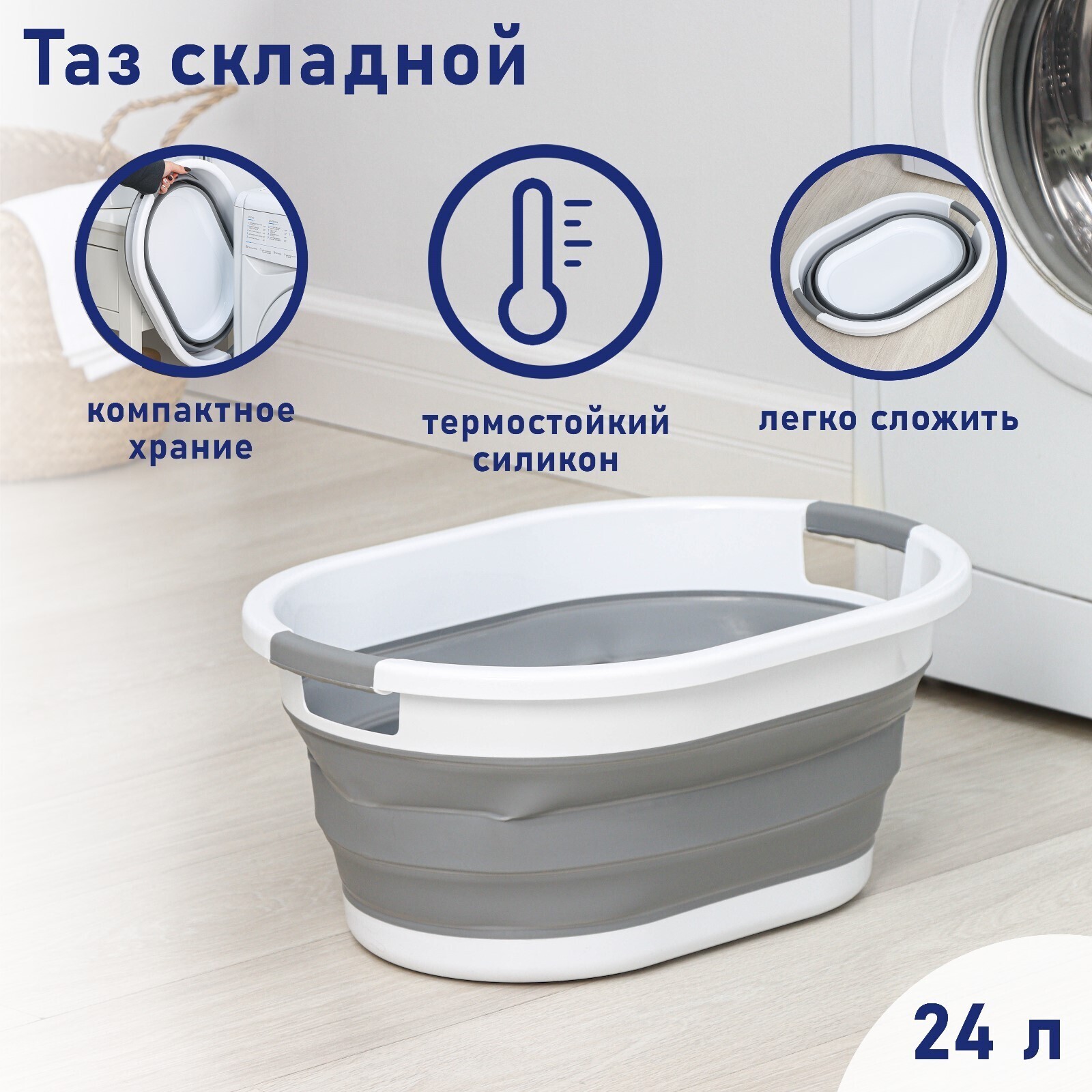 Таз складной, 24 л, 53×38×24 см, цвет серый