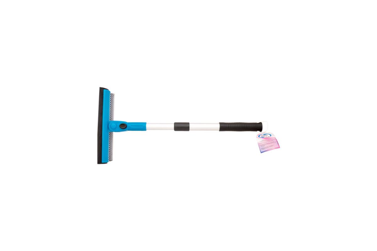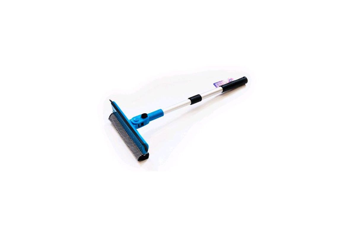 Металлический телескопический сгон для воды с губкой представляет собой удобный инструмент с возможностью регулировать длину рукояти.