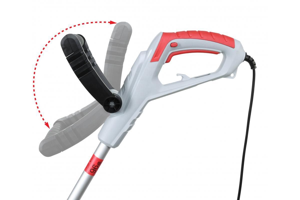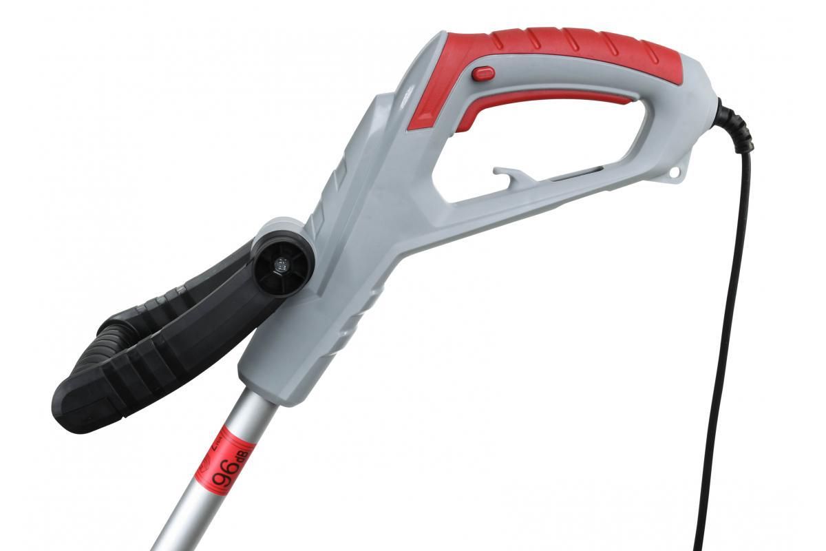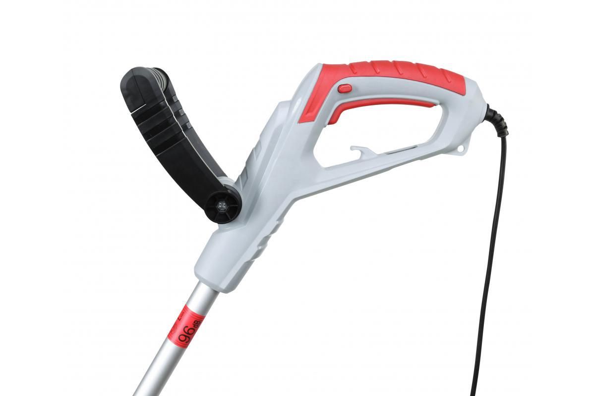 Компактный электрический триммер для скашивания травы на небольших участках. Позволяет с легкостью обработать участки, недоступные для колесных газонокосилок. Имеет регулируемую режущую головку и ролик, которые дают возможность аккуратно обрабатывать края газона, не нанося вреда растениям и мебели.