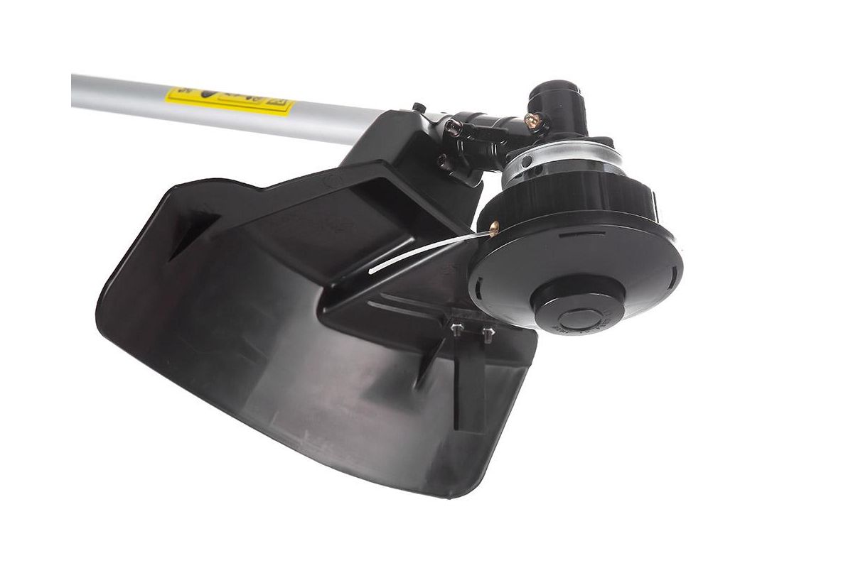 Защитный кожух выполнен из прочного металлического сплава. Он предотвращает выброс травы и других предметов на оператора во время работы.
