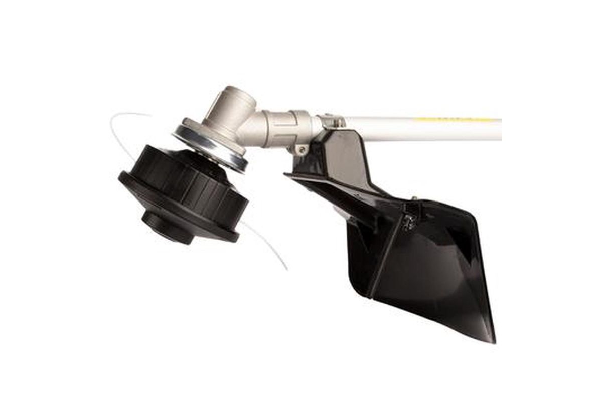 - Защитный кожух уберегает оператора от вращающейся лески и летящих частиц.