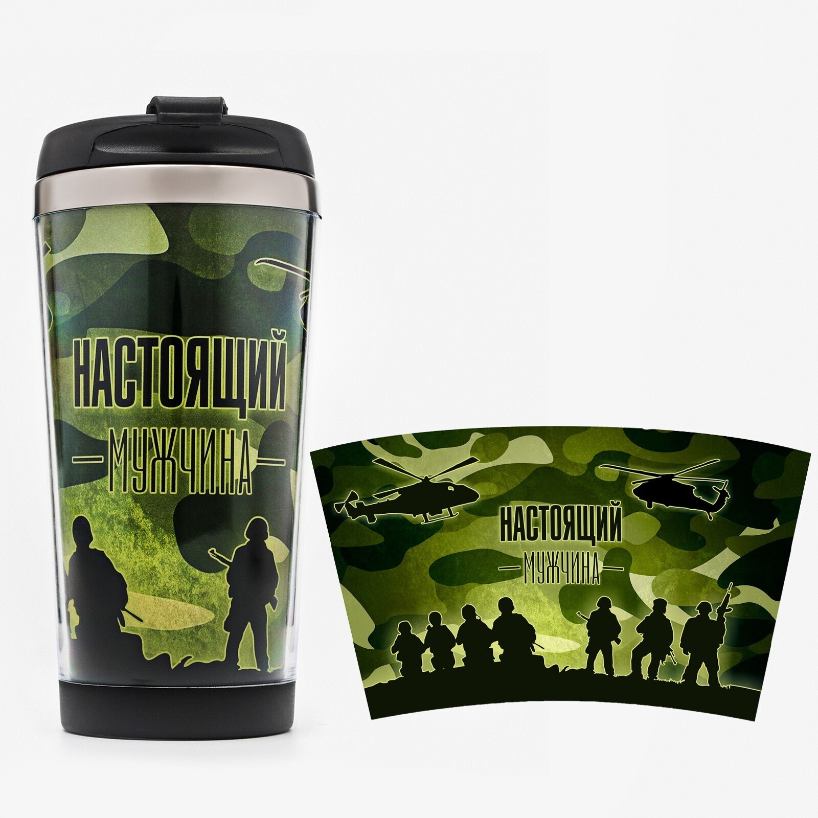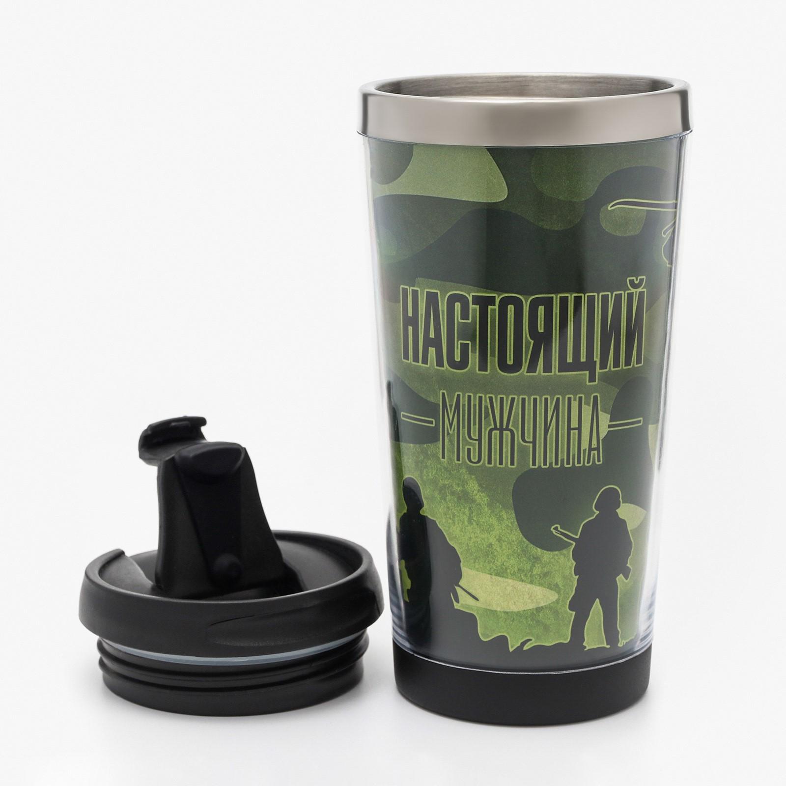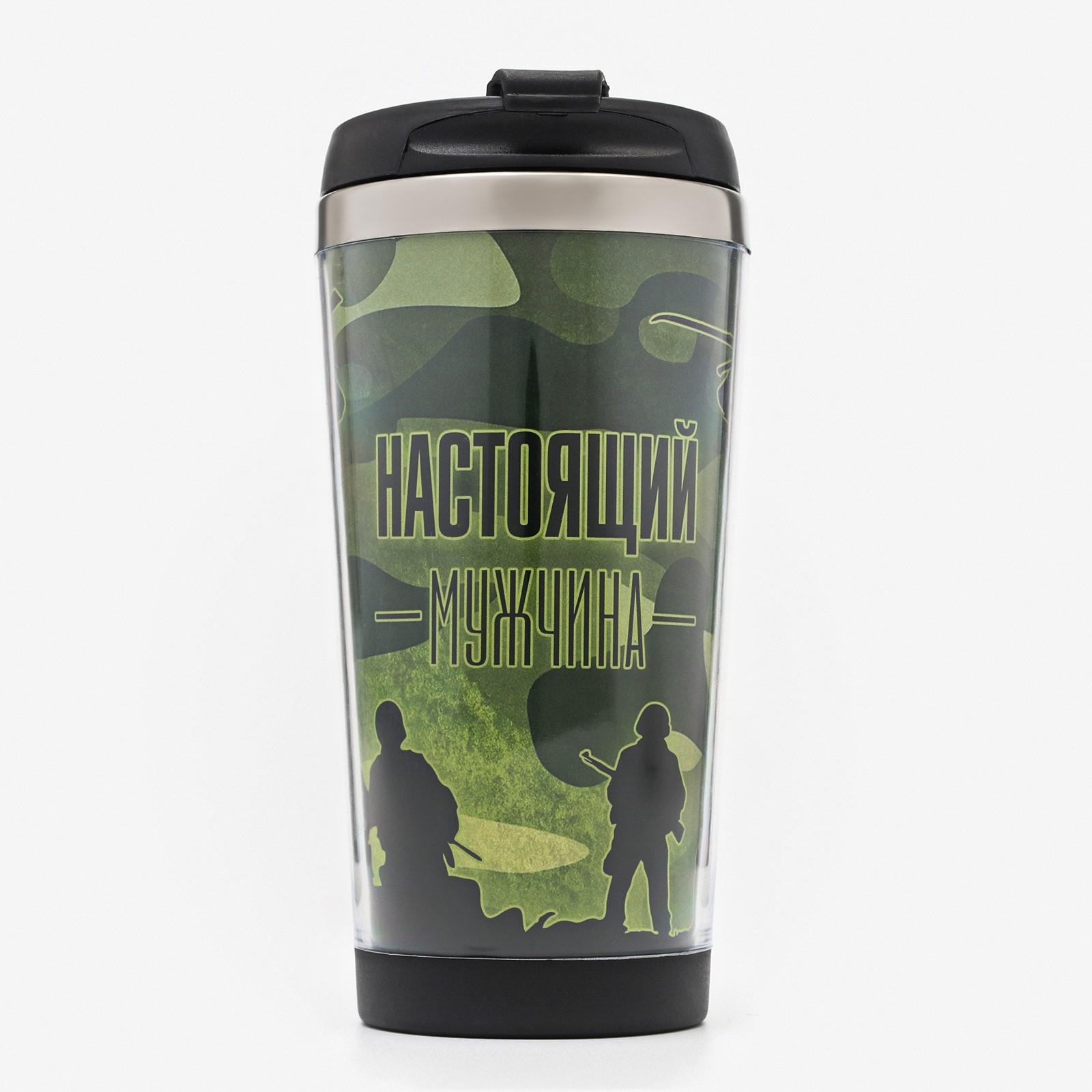 Термокружка со вставкой "Настоящий мужчина" 400 мл, сохраняет тепло 2 ч, 16.5 х 7.5 см