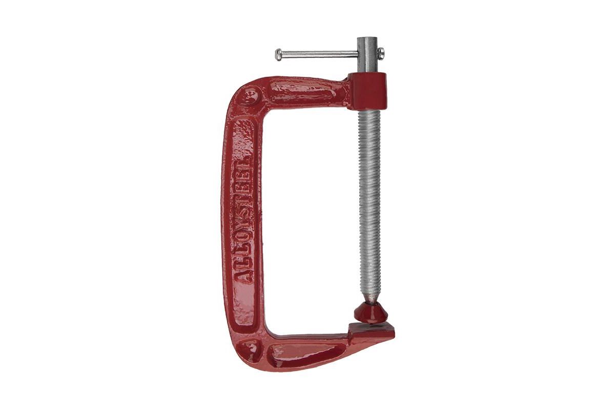 - G-образная струбцина удобна для работы с различными заготовками, в том числе большими по площади;