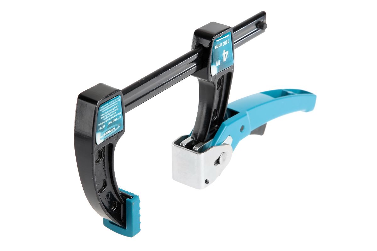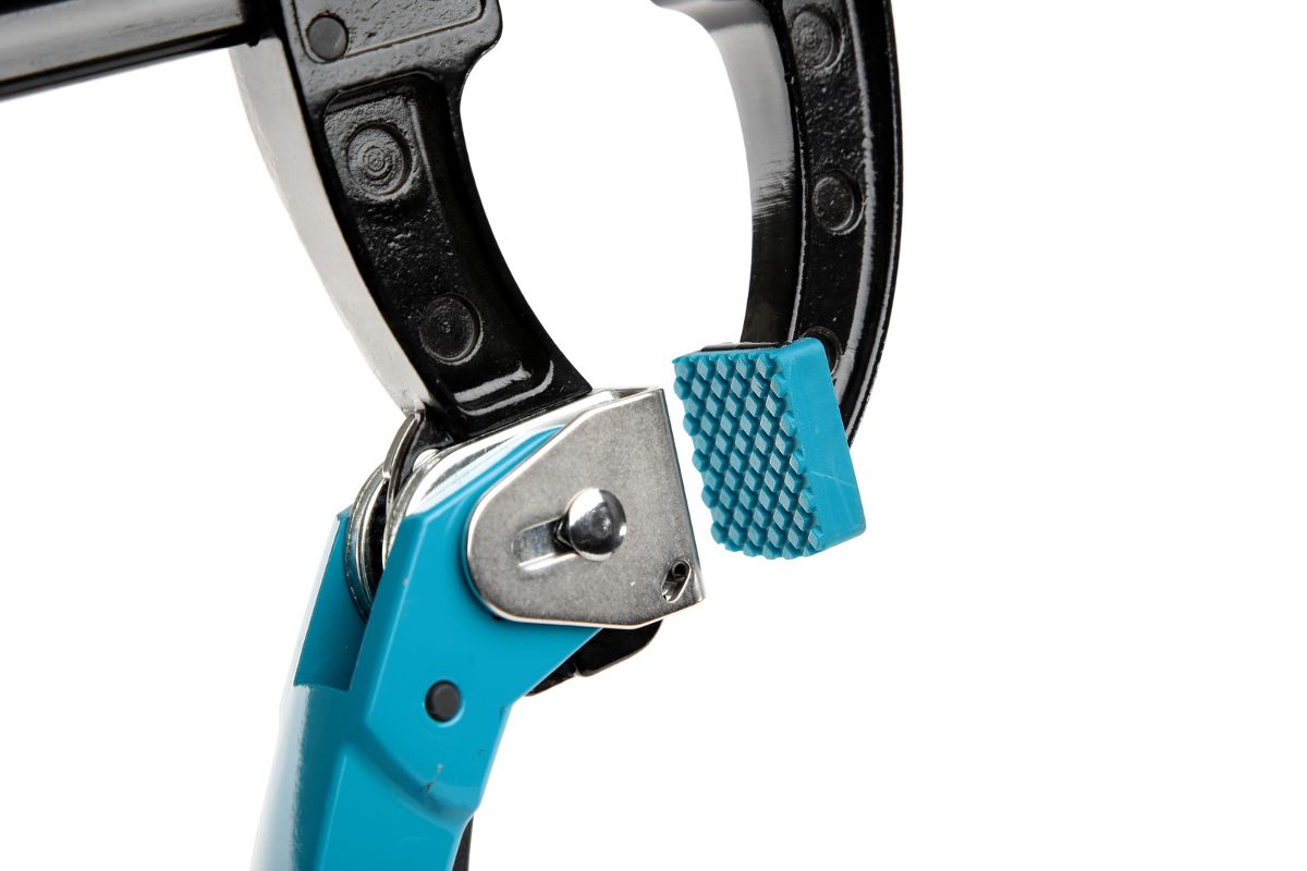 Рычажный храповой механизм упрощает открывание и закручивание струбцины.