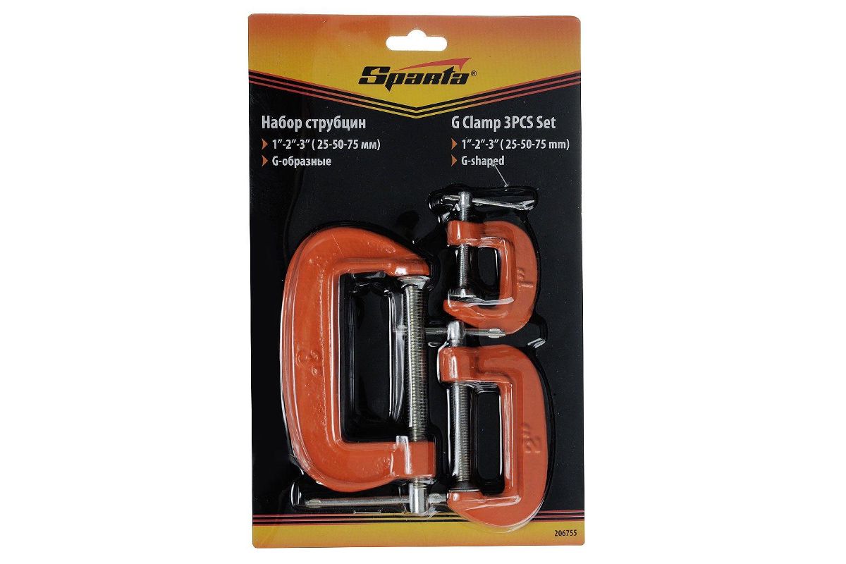 Струбцина SPARTA 206755 G-образные 3шт. 25-50х5мм Литые рамы струбцин покрыты цветным лаком. Оцинкованный винт струбцин со специальным зажимом позволяет надежно фиксировать предметы.