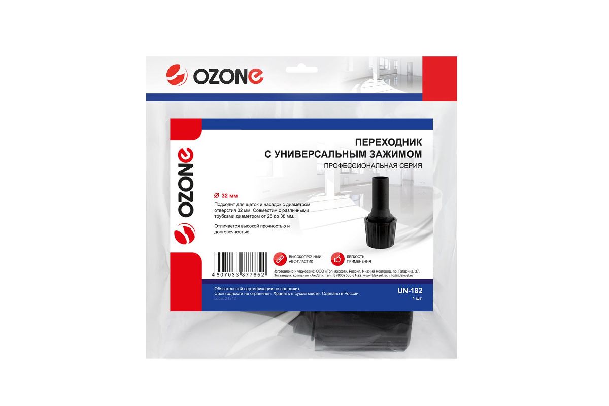 Переходник с универсальным зажимом для профессионального пылесоса, 1 шт. Позволяет использовать щетки и насадки с диаметром соединения 32 мм на трубках с диаметром от 25 до 38 мм., бренд: OZONE, арт. UN-182