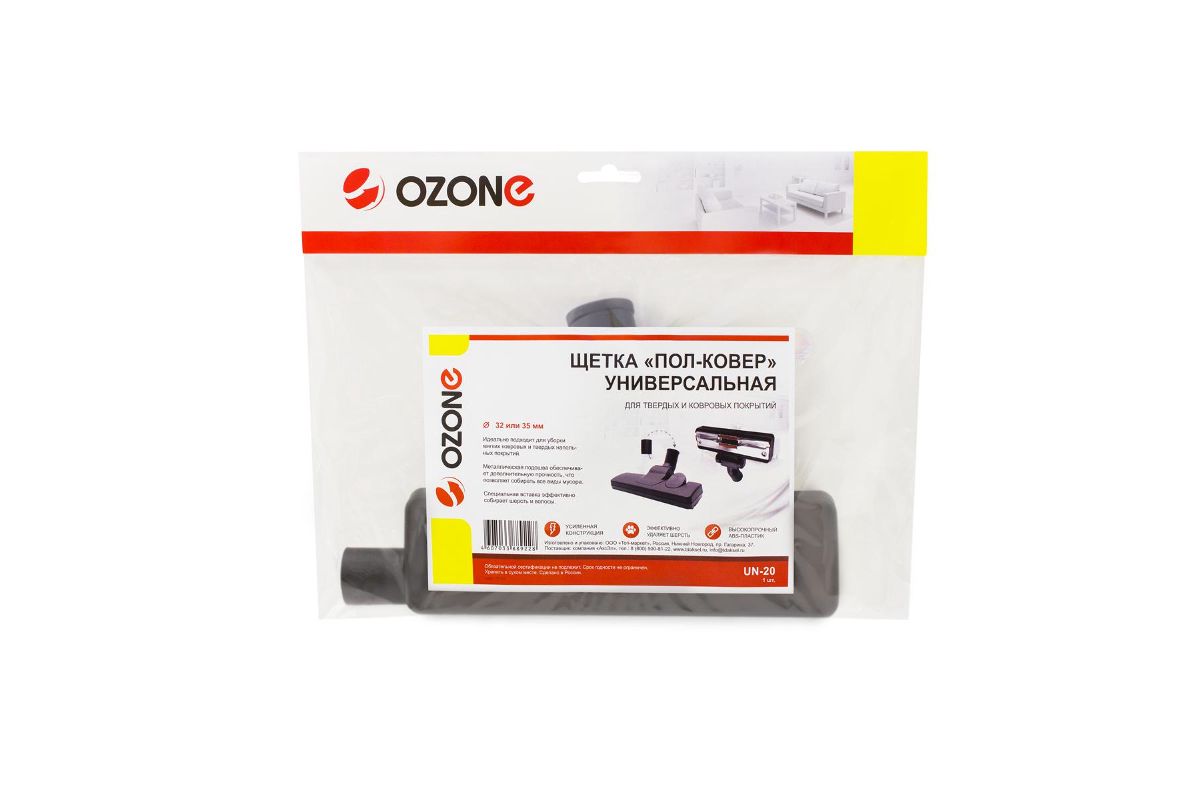 Насадка универсальная ''гладкие и ковровые покрытия с высоким ворсом'' для бытового пылесоса, 1 шт. Переключатель режима работы пол-ковер. Подходит для пылесосов с диаметром удлинительных трубок 32 или 35 мм, бренд: OZONE, арт. UN-20