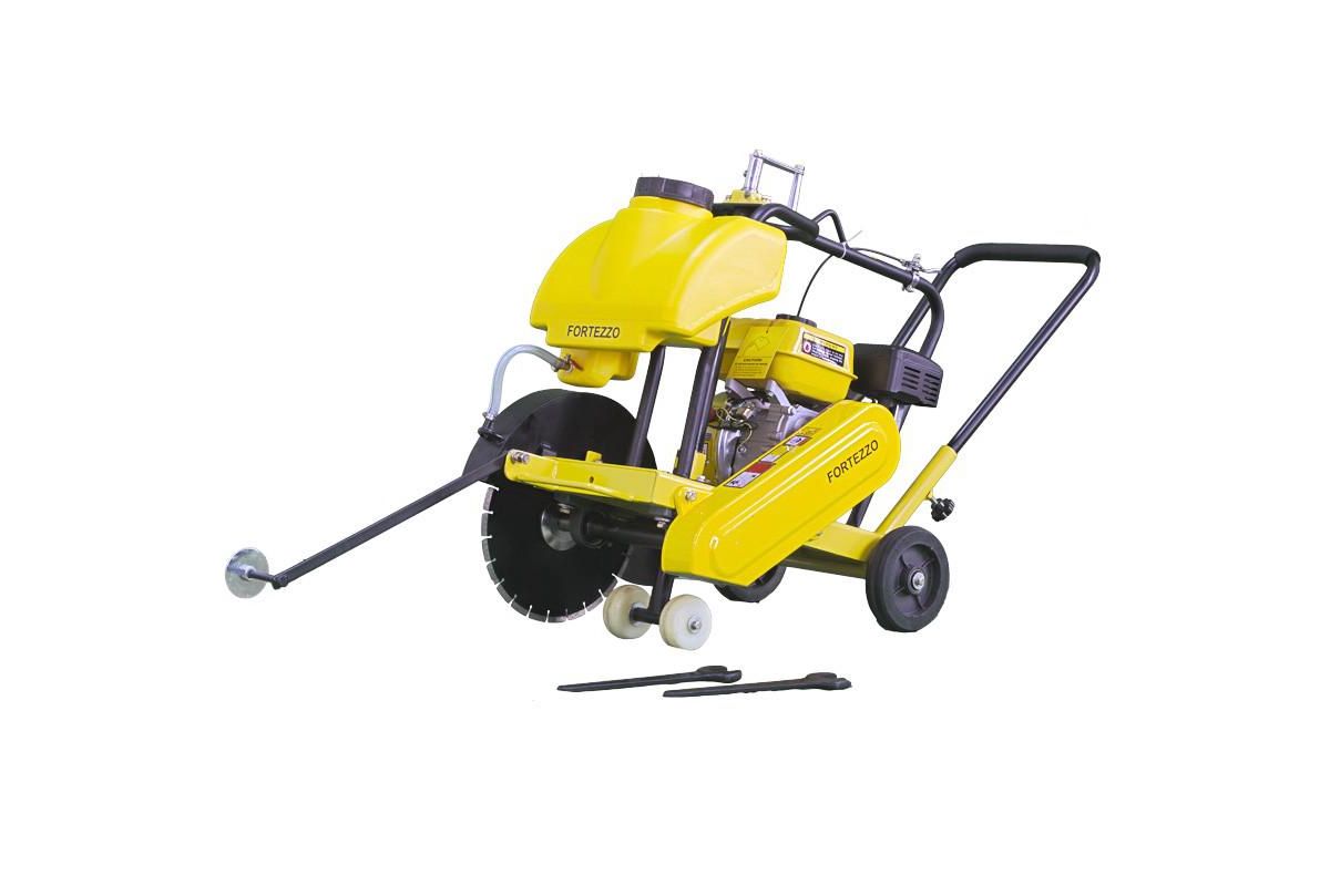 Бензиновый нарезчик швов Fortezzo MF14 по бетону или асфальту с рабочим алмазным диском до 350мм и максимальной глубиной резки 90мм.