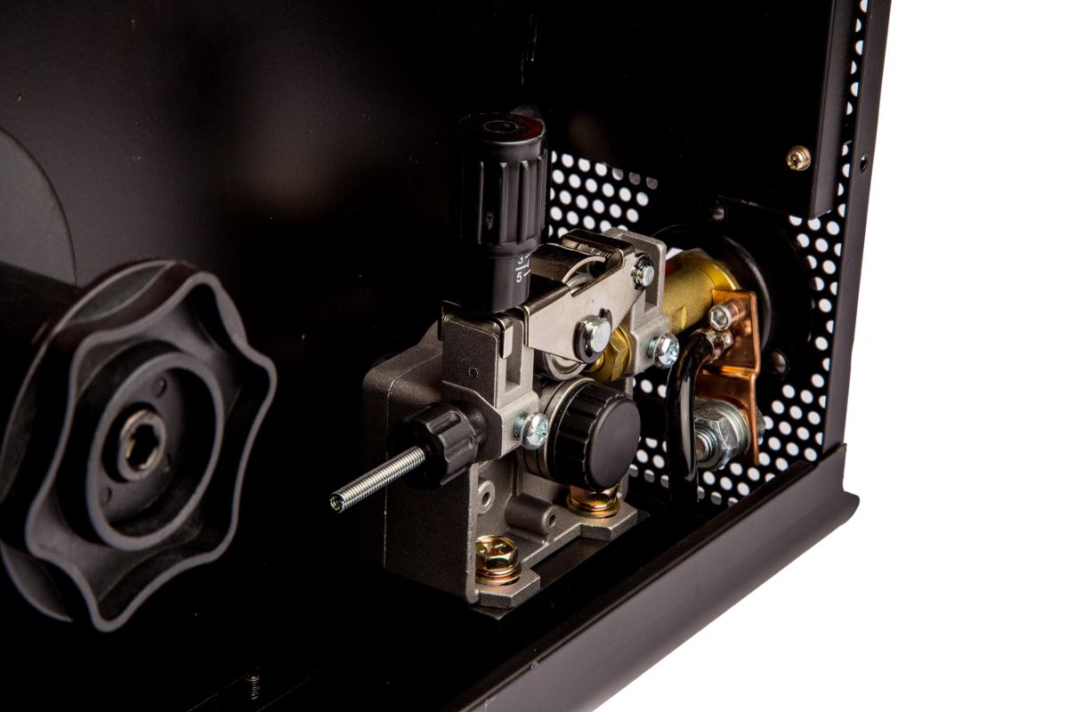 Скорость проволоки и сварочный ток управляются регуляторами спереди. Нужные значения удобно выставляются.