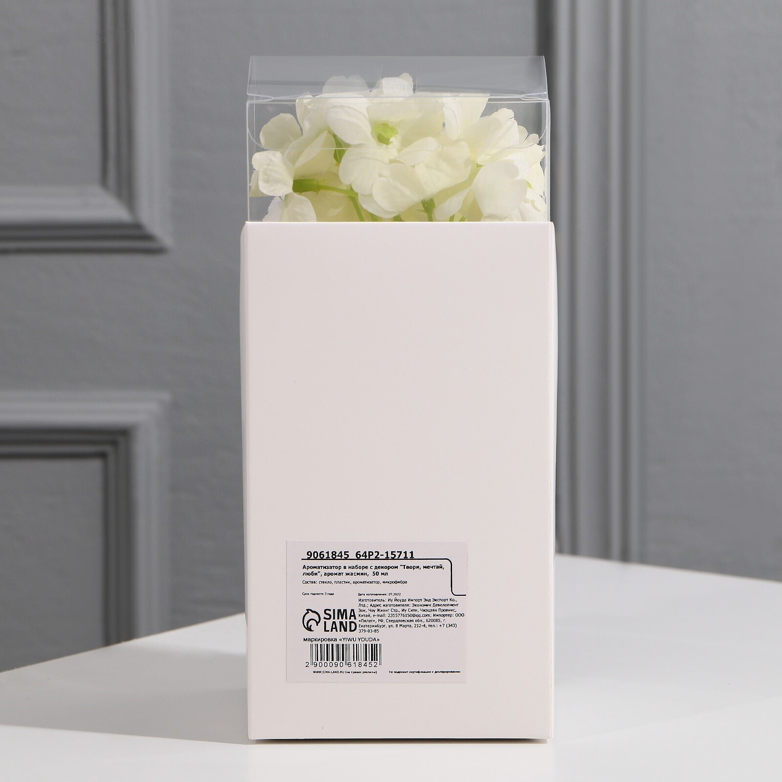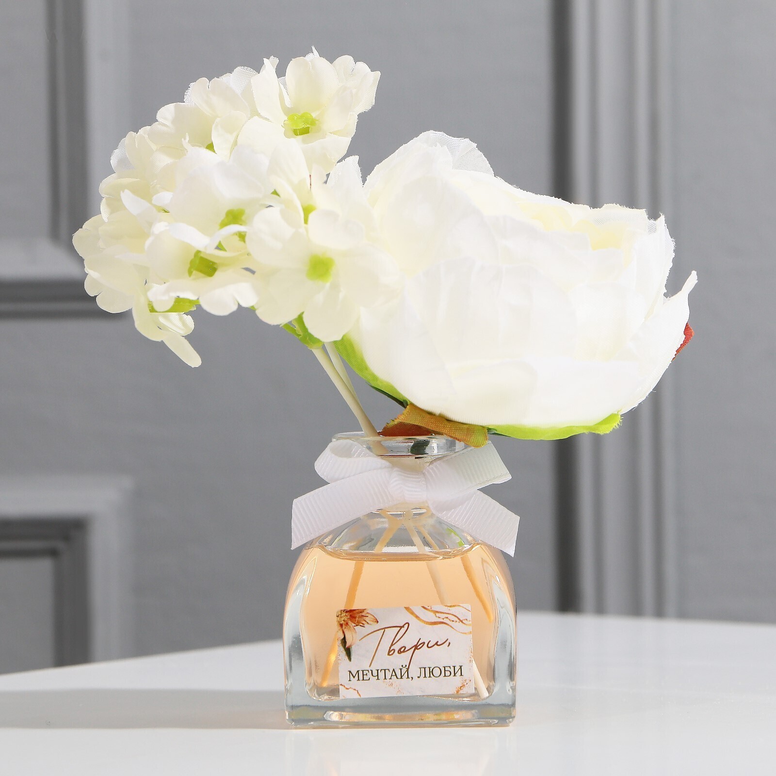Аромадиффузор с декоративными цветами «Твори, мечтай, люби», аромат жасмин, 50 мл