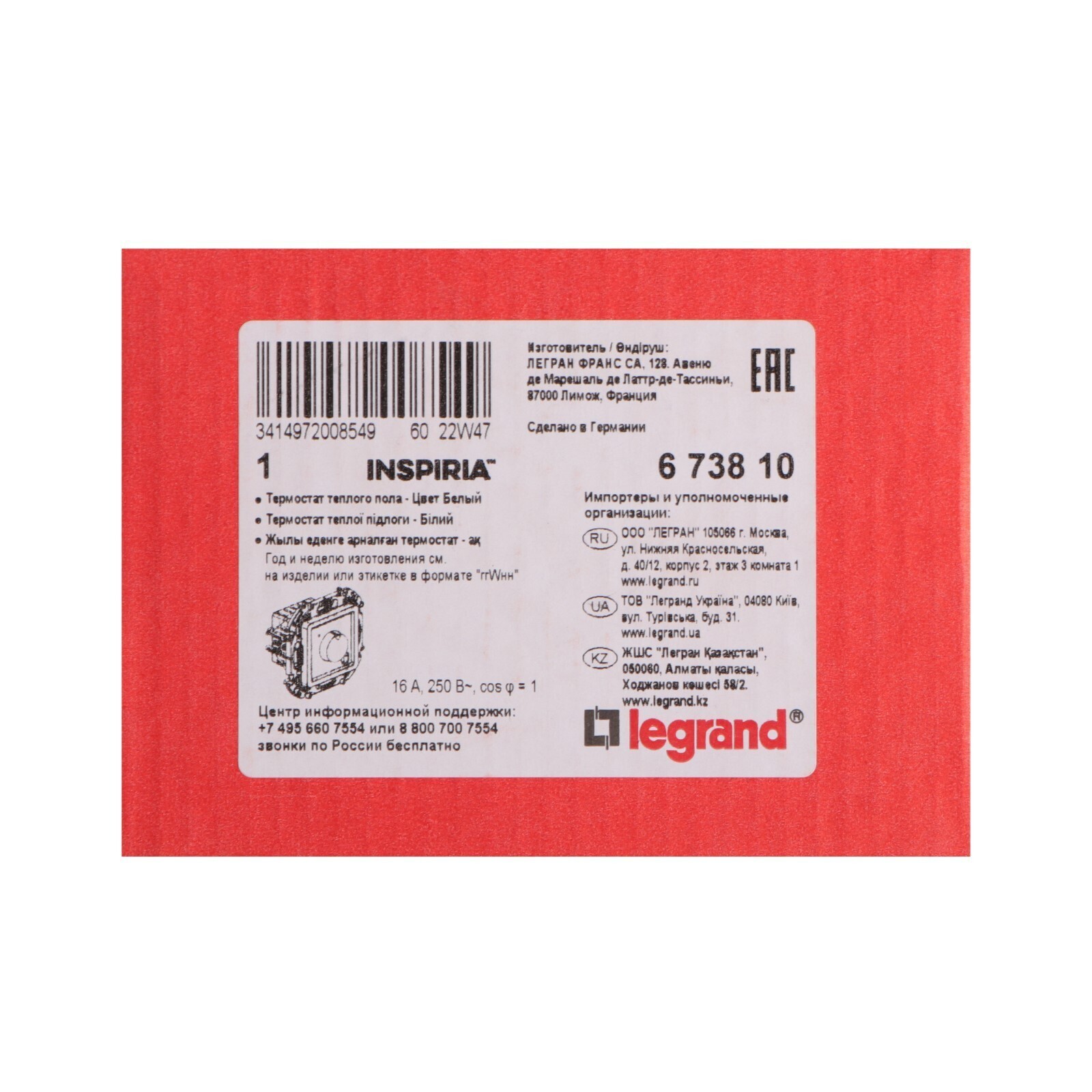 Термостат Legrand INSPIRIA, с внешним датчиком для тёплых полов, Белый